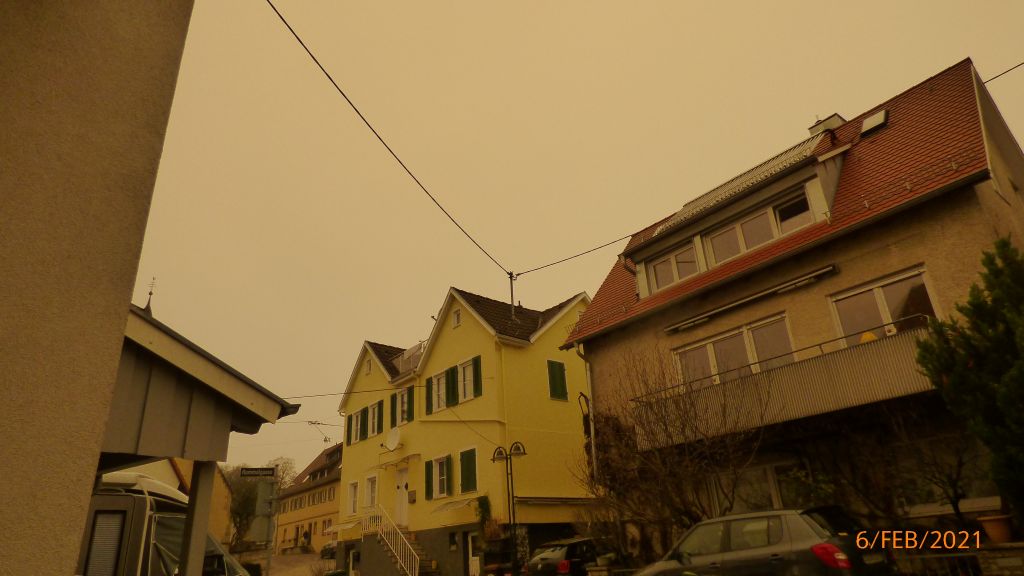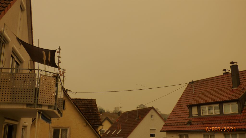 Saharastaub und Regenbogen vom Wohnzimmer aus…