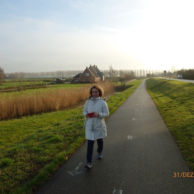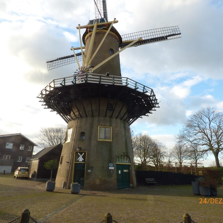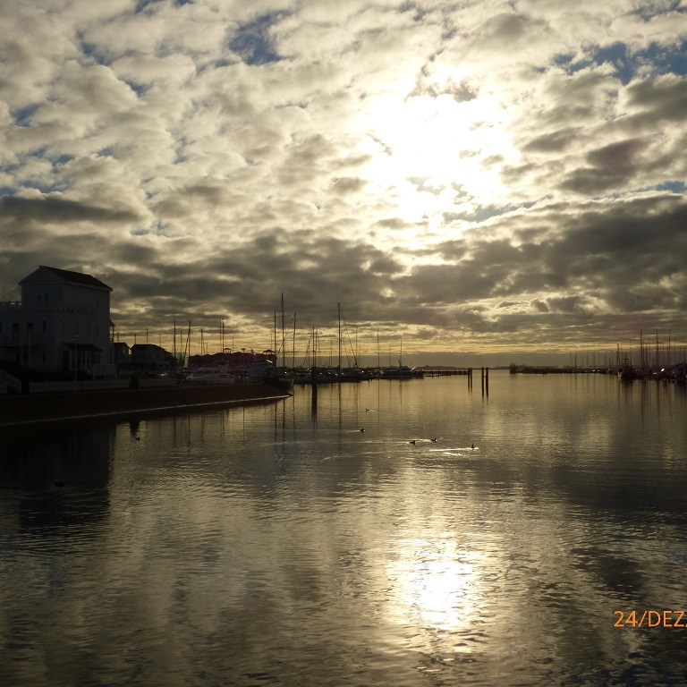 Der Einkauf für die Weihnachtsfeiertage wird fällig. Das Wetter ist prima, passt eigentlich besser zum goldenen Oktober. Zunächst eine kleine Runde über den Platz. In der Nachbarschaft hat ein ganz besonderer Glanzpunkt sein Winterlager auf geschlagen. Noch sind wir guter Dinge nehmen das Wetter dankbar hin und wählen die längere Route nach Hellvoitsluis. Das sind acht Kilometer einfache Strecke. Der Rückweg ist nicht wirklich spaßig. Jeder hat einen Rucksack und eine zusätzliche Tüte. Wir wechseln immer wieder die Tragepositionen und auch den Arm….. Mit Rädern wär das nicht passiert!