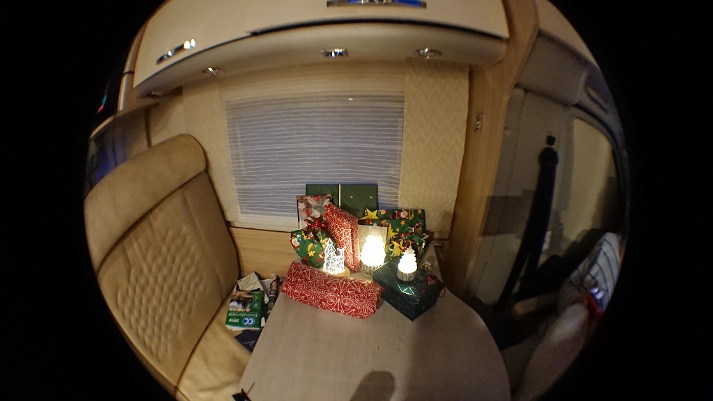 Wir kommen gut voran. Kurz hinter der Grenze, irgendwo nach Venlo, richten wir uns auf einer Raststätte zur Übernachtung ein. Hier können wir endlich das SAT-Ei ausprobieren. Bis zur Sportschau ist alles bereit. Für das erste Abendessen haben wir etwas ganz spezielles besorgt. Es gibt für jeden einen Sushi-Weihnachtsbaum. Na ja ehrlich gesagt sind es normale Sushi-Stücke im Plastikbehälter und der hat die Form einer Tanne. Ein besonders schmackhafter Abschluss des Tages. Es geht weiter in Richtung Rotterdam und dann ist Rockanje auch nicht mehr weit. Wir werden sehr freundlich und sogar in Deutsch empfangen. Die Dame am Empfang lässt uns freie Wahl. Es werden wohl nicht viele Gäste über Weihnachten erwartet.