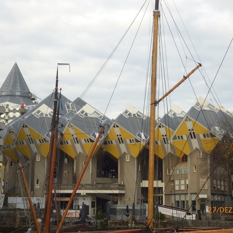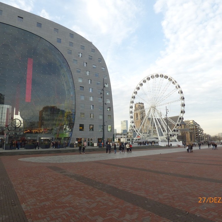 Rotterdam ist eine Reise wert, das wissen wir schon seit dem ersten Besuch im Jahre 2013. Wir stellen die Campingmöbel raus um unseren Stellplatz zu blockieren und fahren mit Pompui in die große Stadt. Wir schlendern vom Rathaus über den Marktplatz zur Markthalle und zum Binnenhafen.