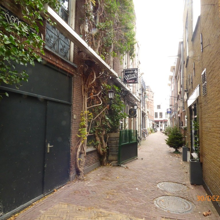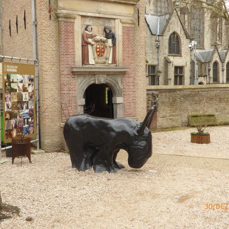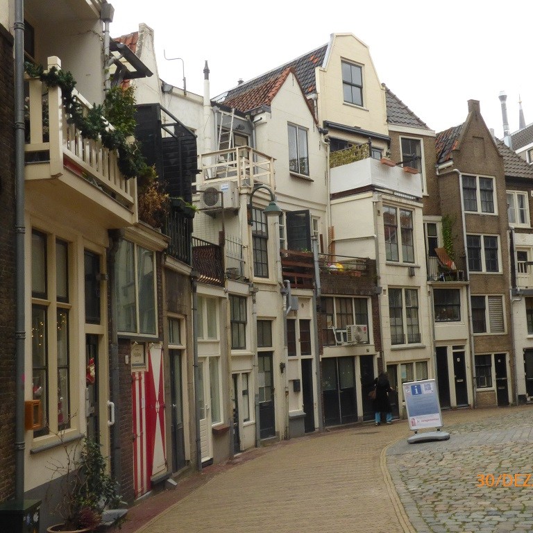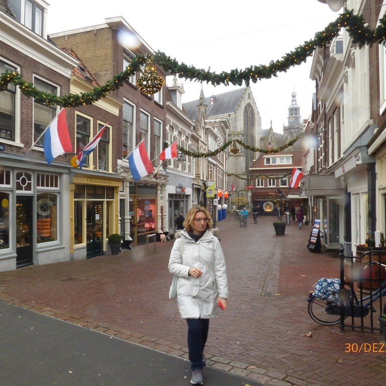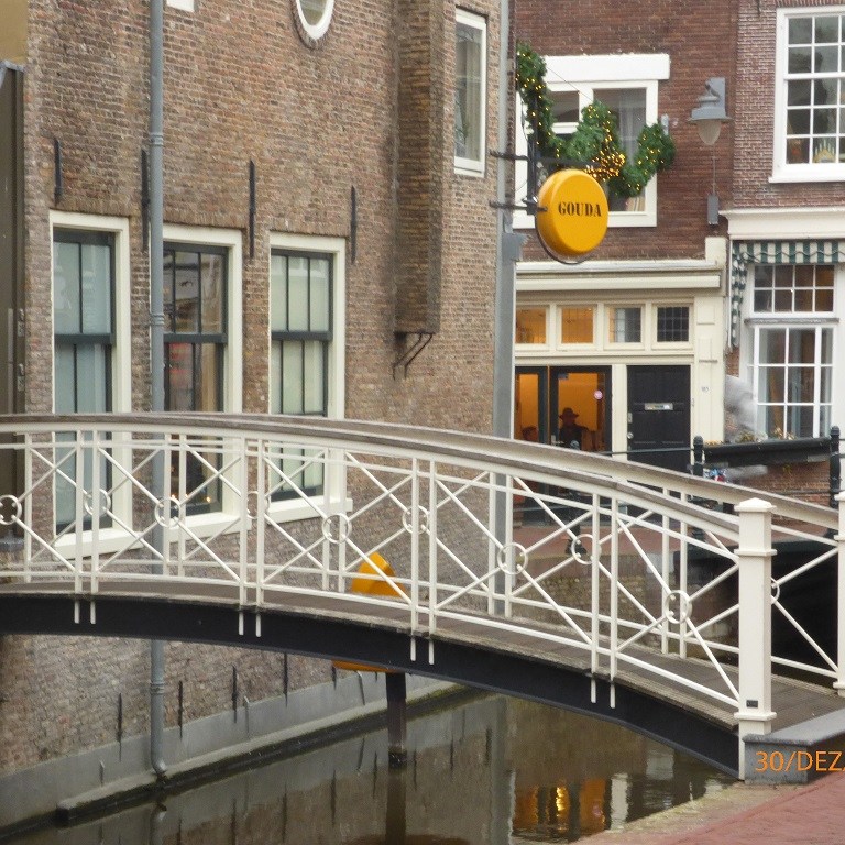 Dann kommt noch der Tagesausflug nach Gouda hinzu. Wir fangen in den Gassen um die Johanneskirche an. Dann durch die Innenstadt. Auch hier bleiben wir am Rathaus hängen, denn um das Gebäude herum fahren die Eislauffans auf einer künstlichen Eisbahn. Ein buntes und lautes Vergnügen. Im Museum von Gouda geht es nur am Rande um Käse. In der Fußgängerzone dann das krasse Gegenteil. Nach einer kleinen Einkehr zum Mittagssnack können wir im letzten Laden nicht widerstehen und kaufen dort nicht nur farbigen Käse sondern auch ein kleines Käsefondueset für zwei Personen und die passende Füllung für die Silvesternacht.