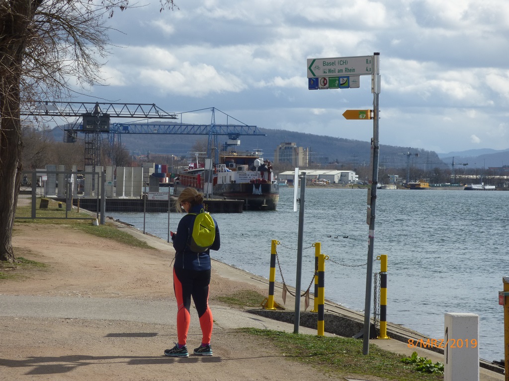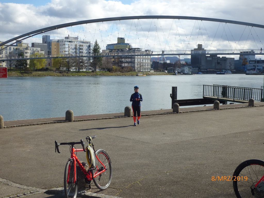 Trotz der guten Wetteraussichten sind wir auf alle Umwelteinflüsse vorbereitet. Die Räder sind nagelneu und brauchen unbedingt Auslauf. Die Strecke nach Weil am Rhein scheint uns passend. Warm eingepackt machen wir uns auf den Weg.