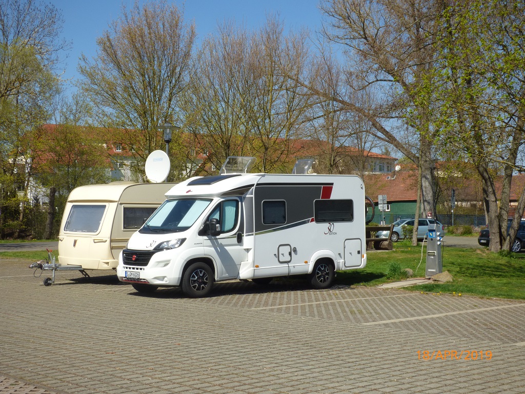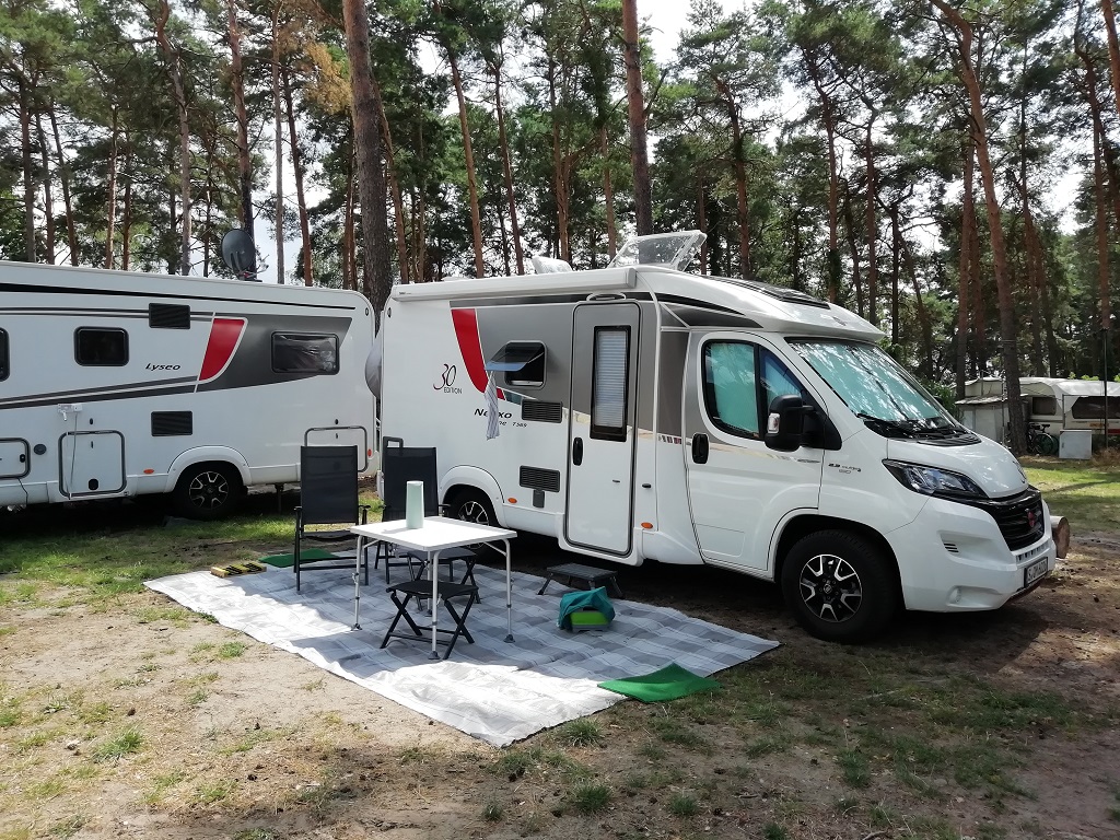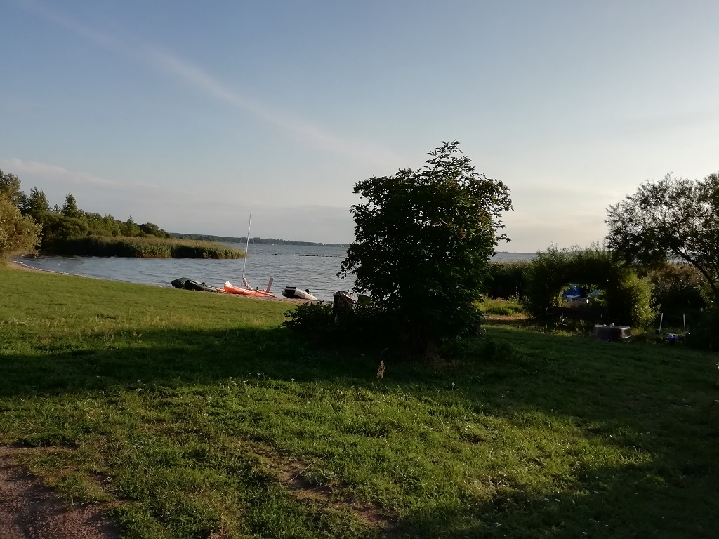 Der Campingplatz in Waren hat noch einen Platz für uns. Wir sind etwas irritiert, denn an der Rezeption nennt man den ungefähren Bereich und überlässt es uns wo und wie wir einparken. Hauptsache niemand verfängt sich in unserem Stromkabel. Mit soviel Freiheit sind wir zunächst überfordert, passen uns aber schnell der chaotischen Grundordnung an und genießen das Frühstück mit Rosinenbrötchen mitten drin in der Wagenburg…