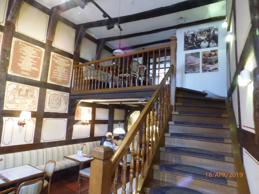 Die erste Station ist Alsfeld. Nach der Vorbeifahrt am Frankfurter Flughafen bewegen wir uns auf alten Pfaden. Denn zu Zeiten der Grundausbildung habe ich noch in Engelstadt bei meinen Eltern gewohnt. Nach etwa 30 Kilometer Landstraße ging es damals in Mainz auf die A 5. Alte und neue Strecke treffen sich am Frankfurter Nordwestkreuz. Wir kommen erst gegen halb zehn nach Alsfeld. Zur Übernachtung bietet das Internet den Wohnmobilstellplatz am Erlenstadion an. Es gibt auch tatsächlich genug freie Stellplätze. Nach einer Runde in der Altstadt gibt es sogar noch ein gutes Abendessen in der Pizzeria San Marino. Das Rückgeld besteht aus einer größeren Anzahl von 50 Cent Münzen. Stromsäule und Parkautomat wollen gefüttert werden. Wir frühstücken beim Bäcker Rahn. Ein tolles Fachwerkgebäude, bestehend aus zwei Einzelhäusern die wohl später durch eine Galerie verbunden worden sind.