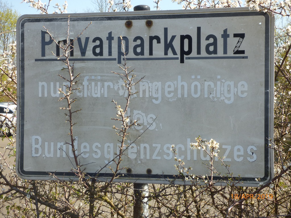 Nach einem langen Spaziergang zum ehemaligen BGS-Standort empfängt uns meine Vergangenheit in Form einer alten Hinweistafel, die aber einem aktuellen Zweck dient. Die Unterkunftswache ist jetzt eine Fahrschule und die Krankenabteilung ein Kindergarten. Das Gebäude meiner Ausbildungshundertschaft hat sich nur wenig verändert. Allerdings wäre da drin kein Morgenappell mehr möglich, denn man hat die Grundfläche aufgeteilt und Wohneinheiten integriert.