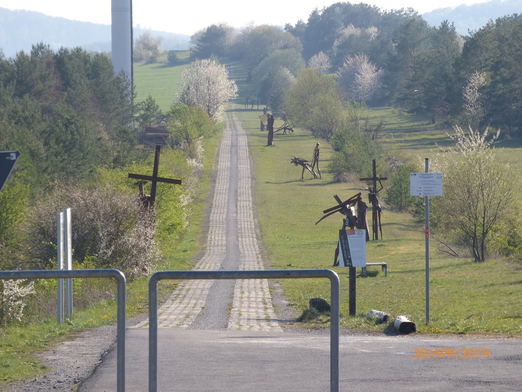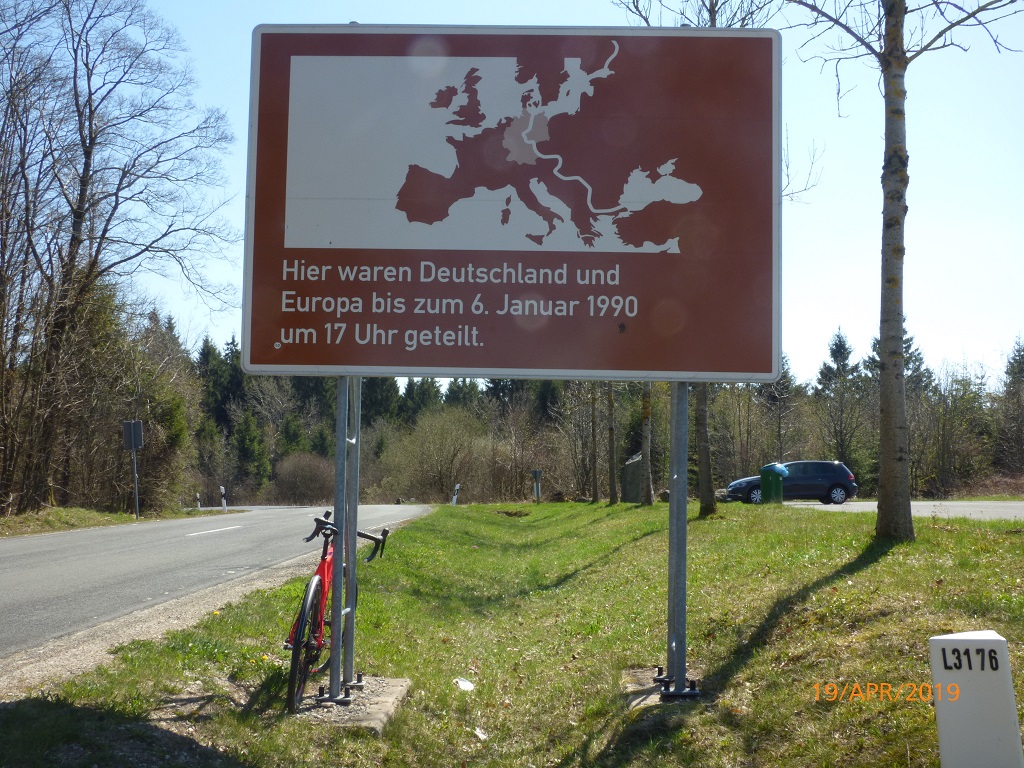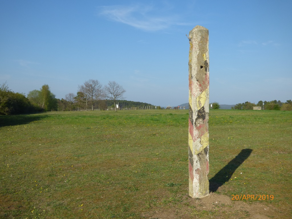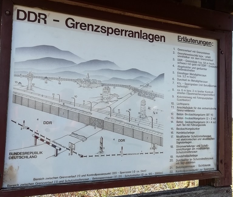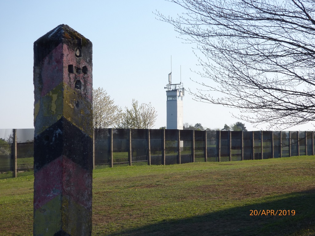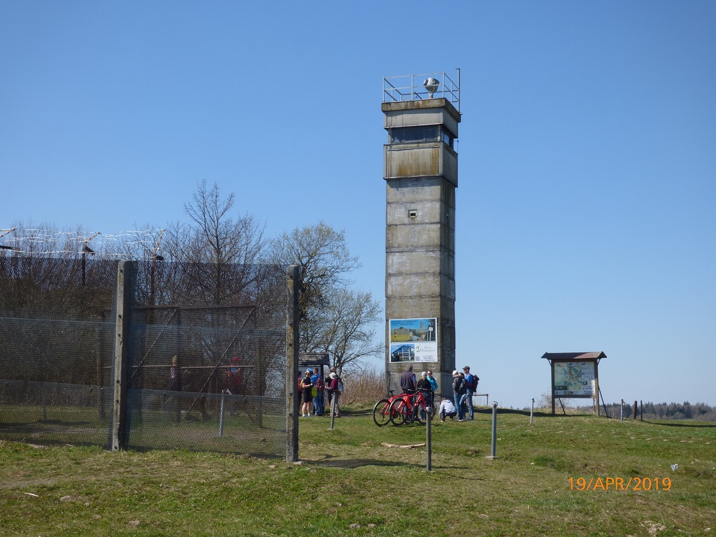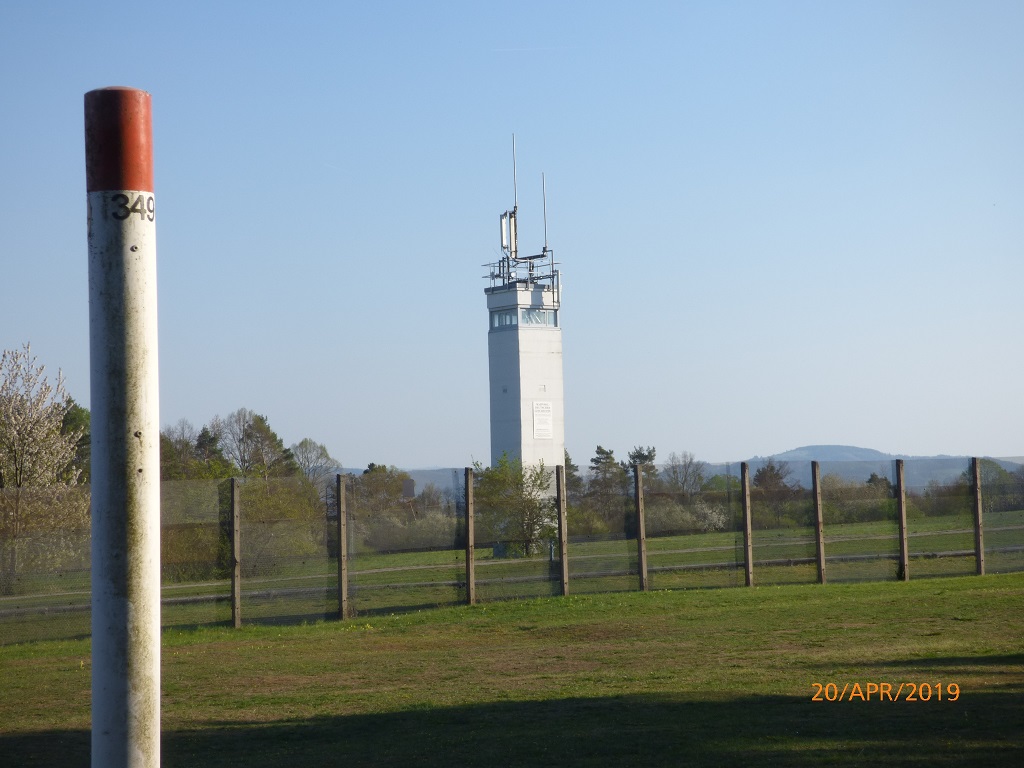 Das Schild mit dem Hinweis auf die Teilung Deutschlands bestätigt uns, dass wir nun doch wieder auf dem richtigen Weg sind. Nach der kleinen Steigung und der Linkskurve ist dann auch schon der Grenzturm in der Ferne zu erkennen. Es geht wirklich um einiges leichter wenn man das Ziel vor Augen hat….