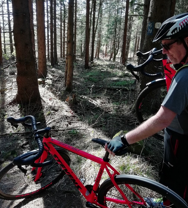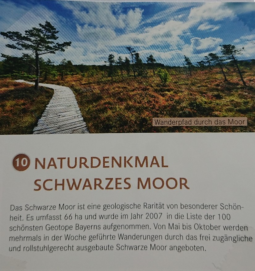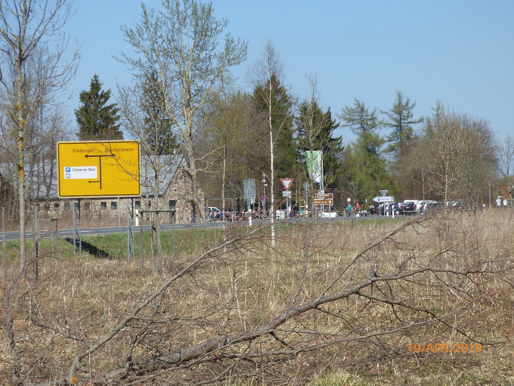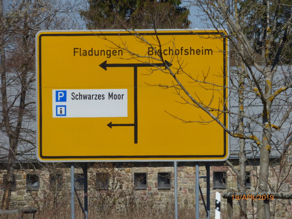Die Rückfahrt dauert wieder einmal länger als geplant. Zunächst befahren wir einen normalen Radweg, dann einen gut benutzten Wanderweg bis wir dann im Wald hängen bleiben und die Räder schultern müssen. Die Geräusche von fahrenden Autos führen uns wieder auf eine Straße. Das Straßenschild macht uns aber deutlich, dass wir in der letzten Stunde im Kreis unterwegs waren, denn am Parkplatz „Schwarzes Moor“ hat die Rückfahrt begonnen.