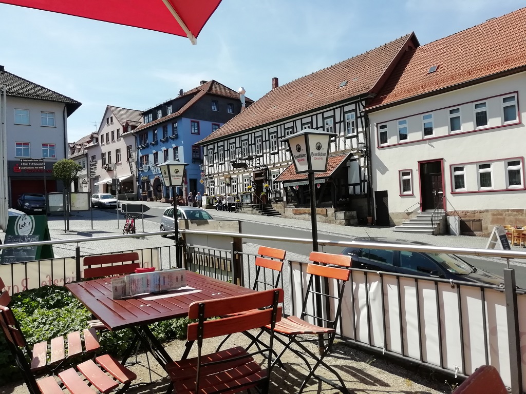 Den Blick zum Marktplatz haben wir damals beim Pizza essen genossen. Nach dem Eis sind wir gut gestärkt für die Rückfahrt. Es gelingt uns sogar ohne Umwege den Campingplatz zu erreichen.… Damit geht die Zeit in der Rhön zu Ende.