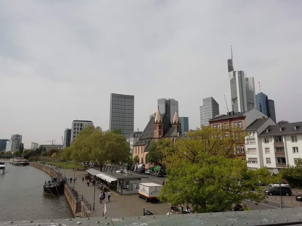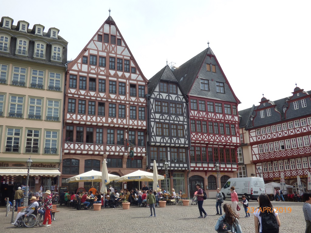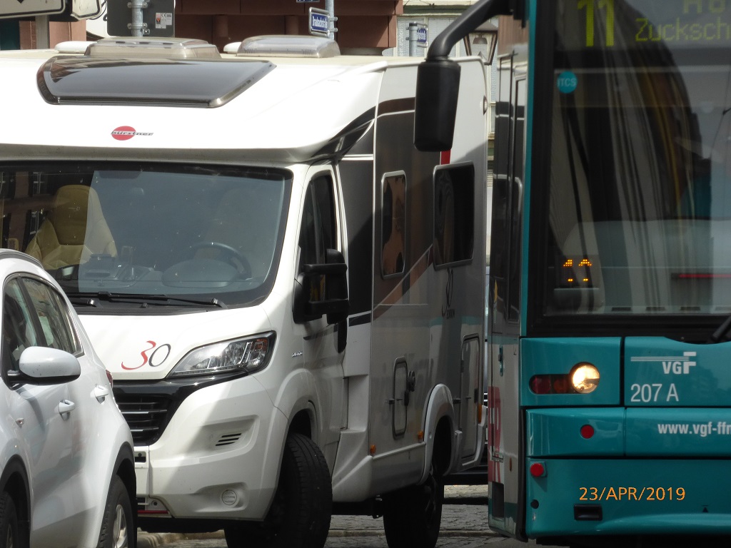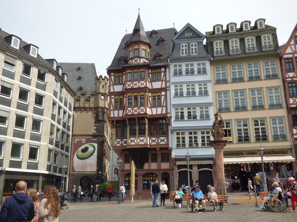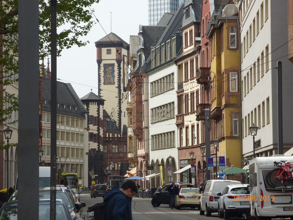 In Frankfurt wird es in jeder Hinsicht eng. Pompui verlangt von einem Straßenbahnfahrer viel Augenmaß, aber alles wird gut. Wir fotografieren aus sicherer Entfernung 😉 Wir schauen uns die Gegend um den Römer an. Tatsächlich sind hier wieder alte Gebäude mit neuen Materialien entstanden. Die Bausünden aus den 60er und 70er Jahren sollen nach und nach durch die Replicas der früheren Altstadt ersetzt werden. Sehr ansprechend was bisher daraus geworden ist. Pompui steht unverletzt am Parkplatz, wenn schon die Straßenbahn genug Platz hat, wer soll da noch anecken….