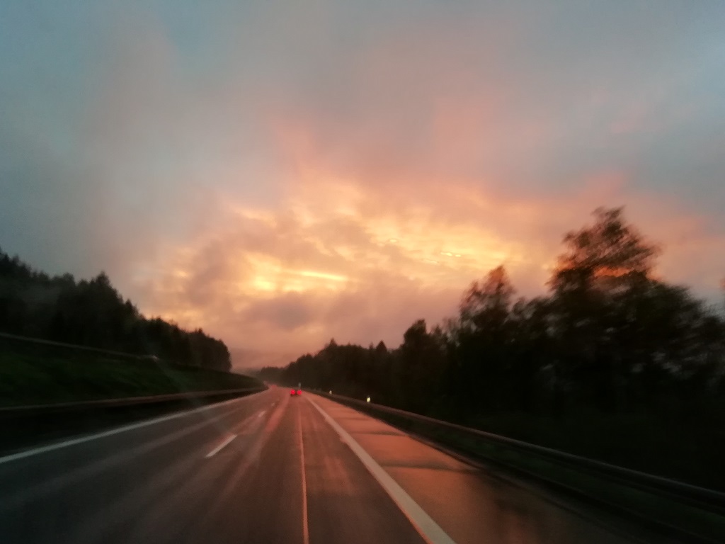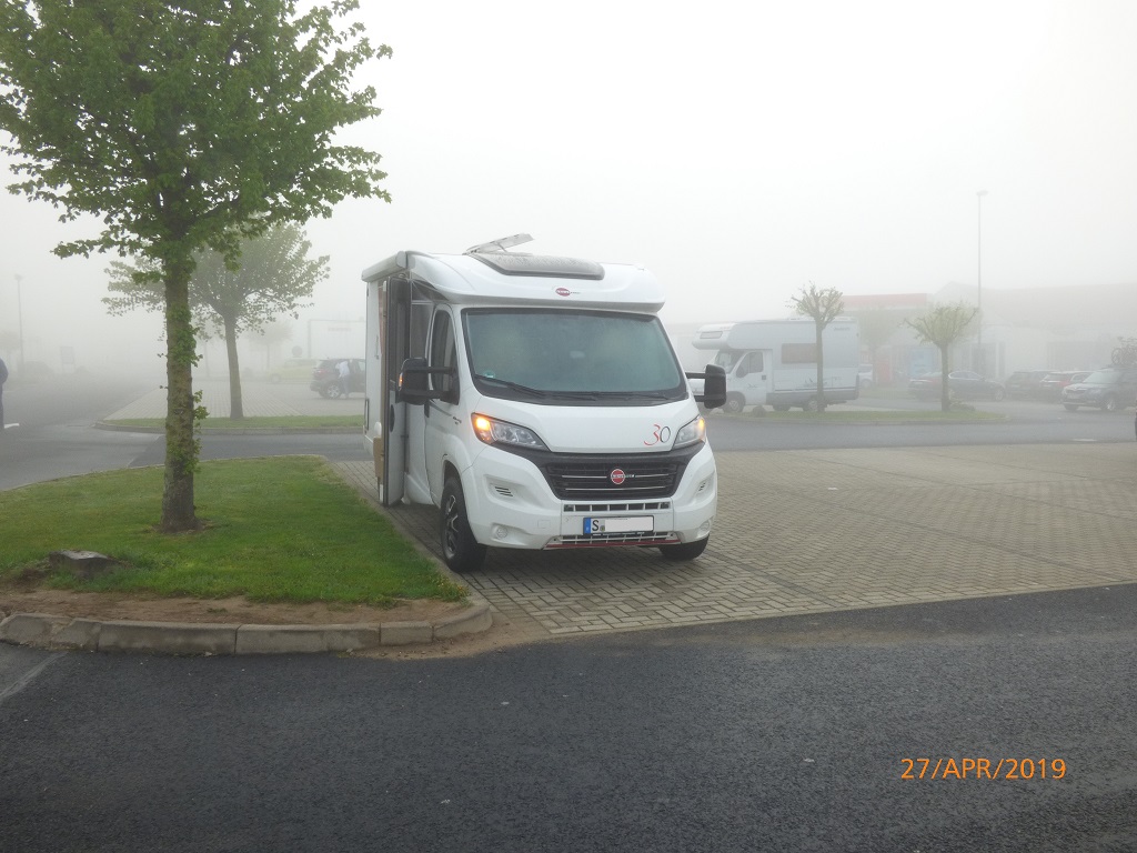 Den Hochzeitstag und damit auch meinen Geburtstag wollen wir so oft es geht in Bremen und Hamburg feiern. Für die diesjährige Tour haben wir uns neue Campingplätze ausgesucht. Das erste Ziel ist somit der Hansecamping in Bremen. Wir starten Freitag nach der Arbeit. Auf der Fahrt geschieht nichts außergewöhnliches. Den getarnten Erlkönig haben wir leider nur von hinten erwischt…… Dafür aber einen tollen Abendhimmel….. Ein Zwischenstopp ist eingeplant und der Autohof Malsfeld bekommt den Zuschlag für die Übernachtung. Der nächste Morgen überrascht uns mit dichtem Nebel und einem kalten Schneckenhaus. Die Gasflasche ist leer und daher steht die Heizung auf Störung. Kein Problem die Tankstelle bietet auch volle Flaschen zum Tausch an. Während ich tausche kümmert sich Elli um das Frühstück. Das kleine Hotel nebenan bietet nämlich ein morgendliches Buffet an und sie legt schon mal das Handtuch auf die Liege. Vorm Frühstück noch ein paar Impressionen im Nebel.