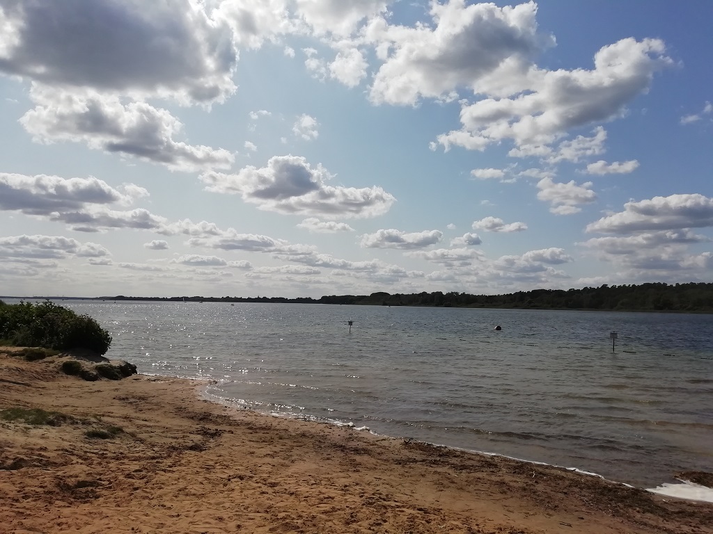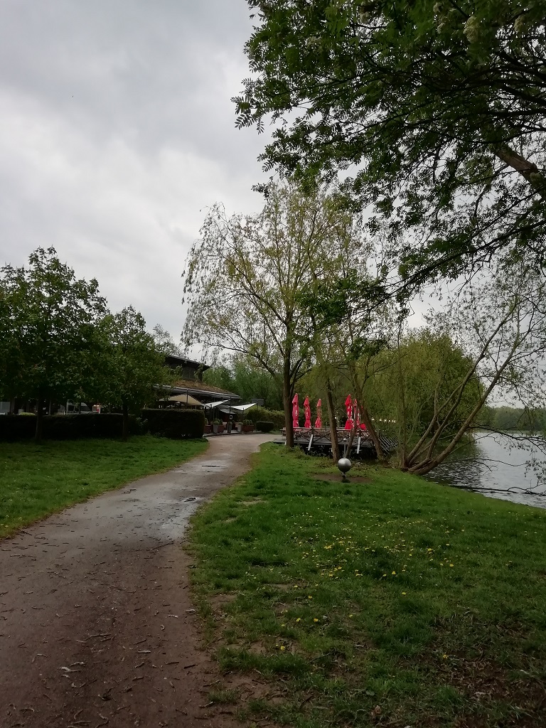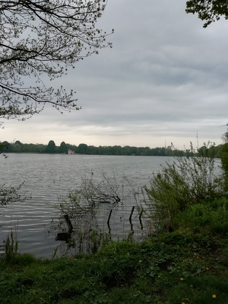 Das Frühstück wird ausgedehnt. Erstens begeistert das Buffet und zweitens hoffen wir darauf, dass sich der Nebel lichtet. Der Plan geht fast auf. Der Nebel lichtet sich zwar, aber unterwegs geraten wir in einen Stau. Also nutzen wir die Abfahrt zu einer Raststätte und legen eine Mittagspause ein. Der Hansecamping liegt an Bremens Stadtwaldsee. Die Rezeption öffnet um 15:00 Uhr und die Zeit bis dahin verbringen wir mit einem Spaziergang am See und einem Kaffee im dortigen Restaurant. Der Rundweg eignet sich hervorragend für Ellis morgendliche Joggingrunde….