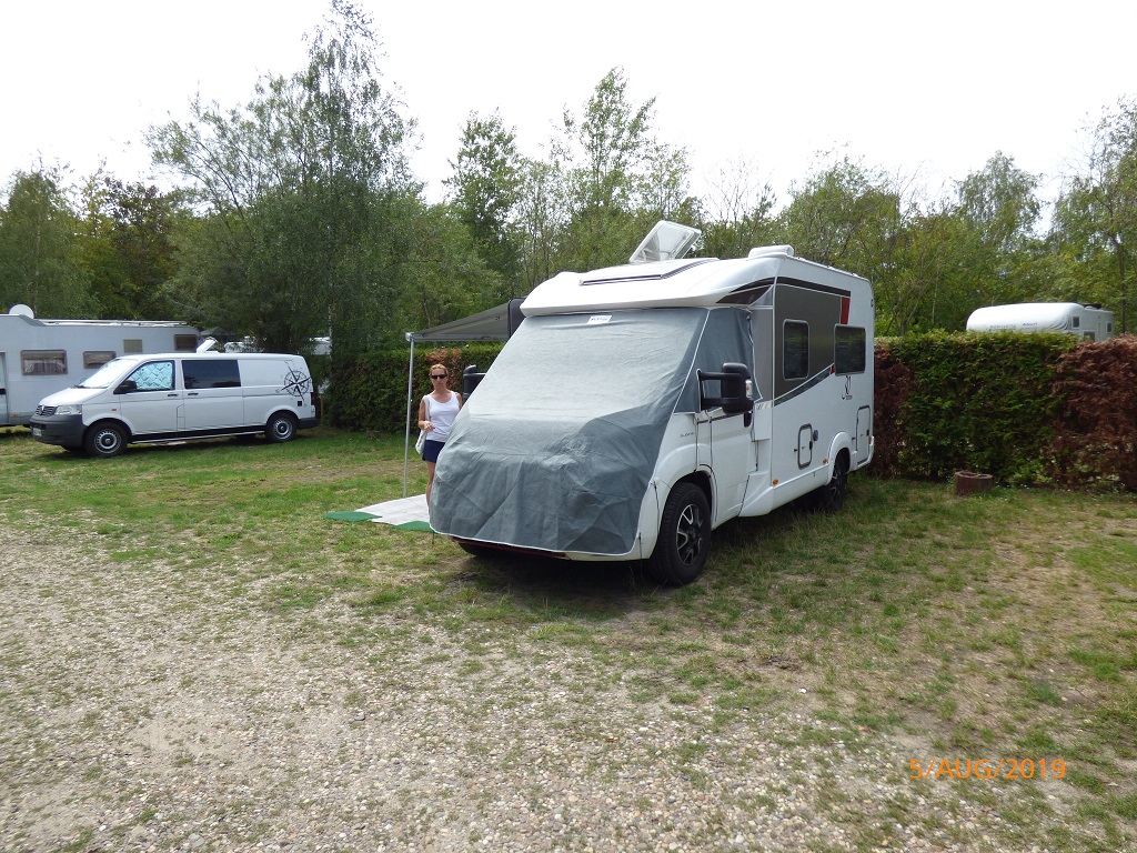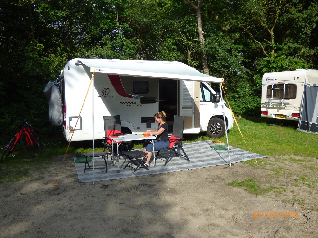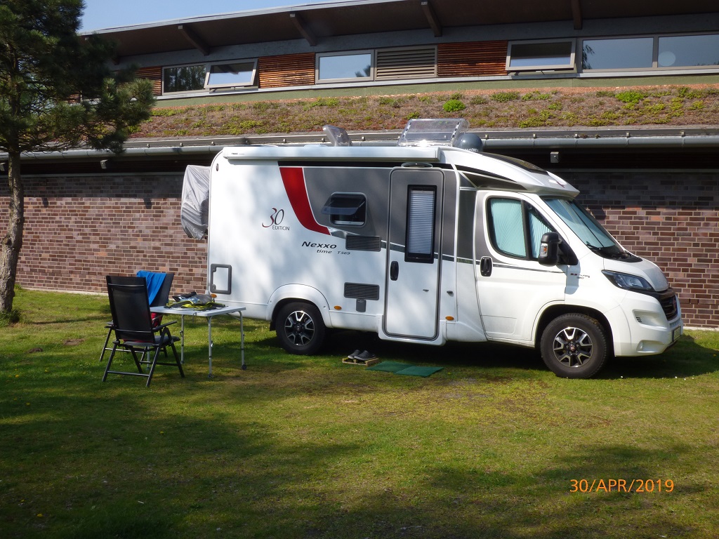 Das Eis gönnen wir uns wieder in Kranenburg. Die Pause am Eissalon hilft uns die Ungeduld zu überwinden, denn wir sind zwar sehr neugierig wollen aber nicht zu früh zur Firma KleCamp. Zum Spaghetti Eis gibt es sogar noch einen zweiten Latte Macchiato. Bei unserer Ankunft steht Pompui bereits im Hof. In der Sonne trocknen die Klebstellen schneller. Der Chef persönlich übergibt uns das WoMo, zeigt uns die montierten Geräte und erklärt uns die Steuerung per Handy App. Alles ist perfekt und jeden Cent wert. Er rät uns noch die neuen Batterien zwei Tage am Netz zu laden, damit sie auf 100% Ladung kommen und dies auch entsprechend gespeichert wird. Passt gut ein paar Tage an der Nordsee sind bereits eingeplant. Den Ferienpark Kijkduin haben wir uns ausgesucht.