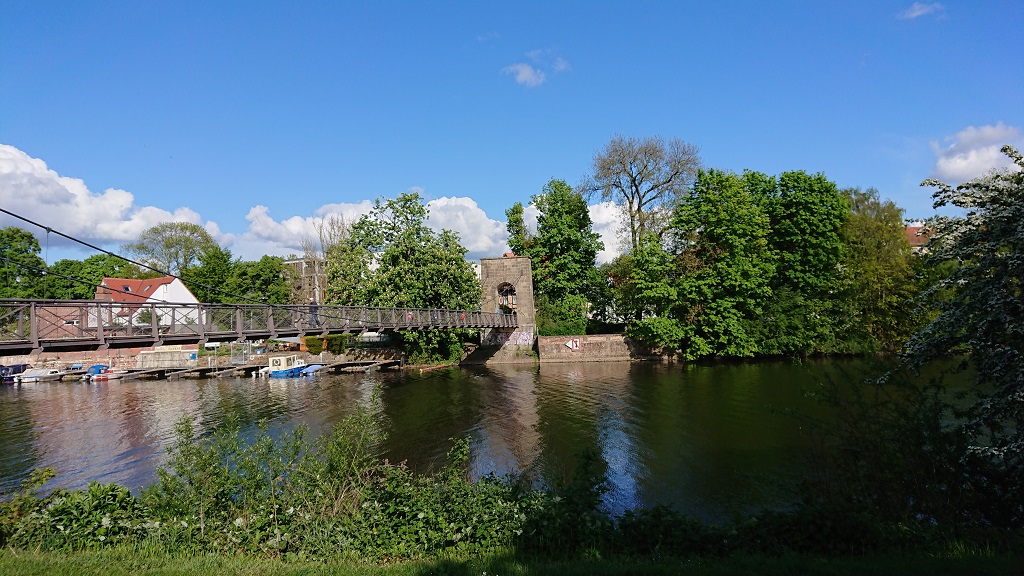 Das Wetter ist wirklich gut, daher verlängern wir die Tour an der Weser entlang. Ab dem Weserstadion geht es auf den Rückweg. Jetzt wird es etwas komplizierter, denn Komoot, unser neuer Radtourenplaner, versteht uns nicht. Oder ist es andersrum? Auf jeden Fall bringt uns ein freundlicher Bremer wieder auf den richtigen Pfad.