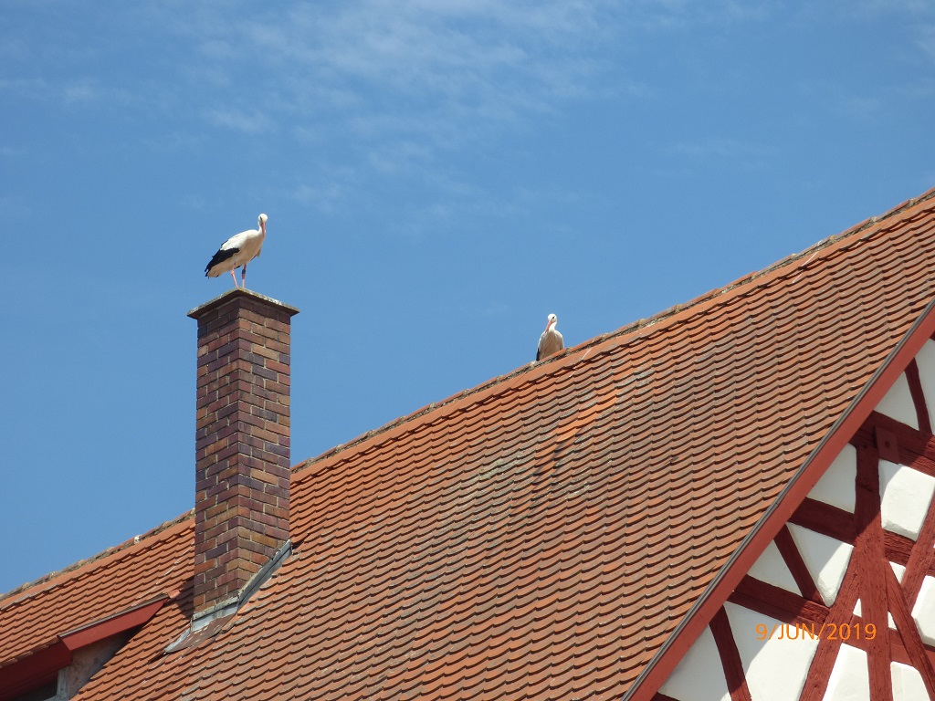 Die Anlage wird offensichtlich von einem Verein betrieben. Auch im Kiosk leisten Vereinsmitglieder ihre Arbeitsstunden ab. Wir vertreiben die letzten negativen Stimmungen und lassen uns Kaffee und Kuchen auf der Terrasse des Freibades schmecken. Der Kuchen muss natürlich wieder abtrainiert werden. Ganz einfach wäre es gewesen von der Terrasse in den Weiher zu springen, aber bei den Vorbereitungen zum Badeurlaub sind tatsächlich die Badesachen zu Hause liegen geblieben!!!! Dann setzen wir uns auf die Räder und schauen uns Merkendorf an. Ziemlich wenig los in der Stadt, nur auf den Dächern herrscht reger Betrieb. Am Ortseingang halten wir noch ein kurzes „rote Renner – Treffen“ ab.