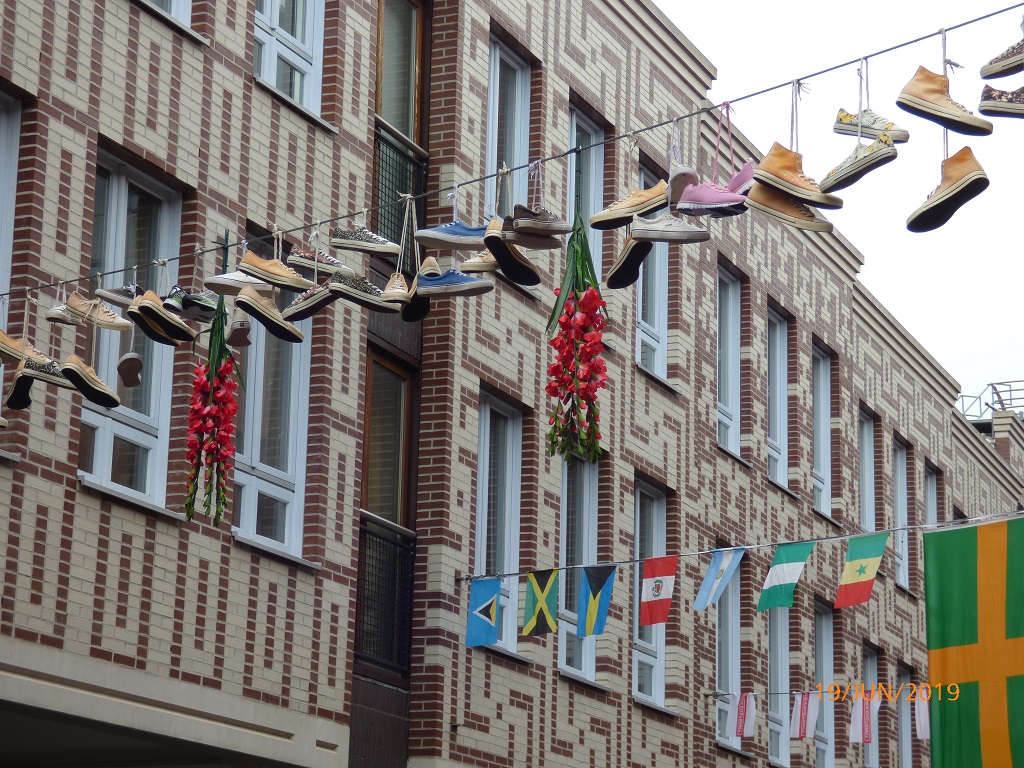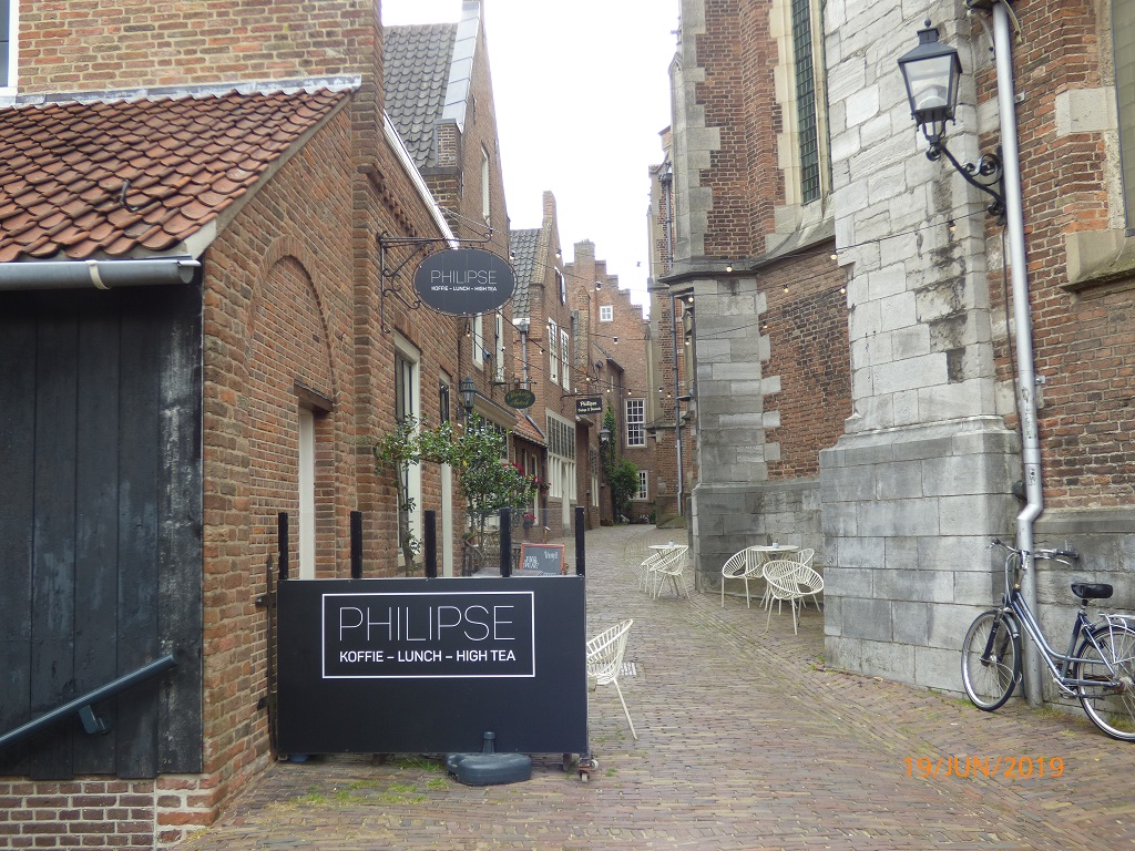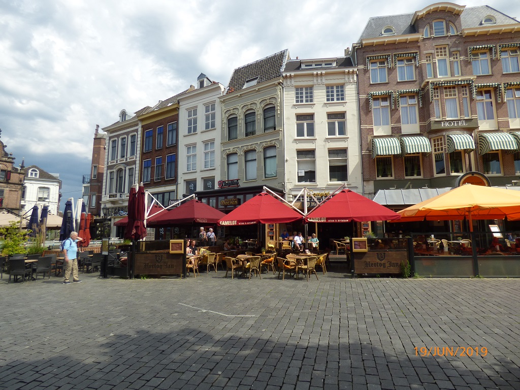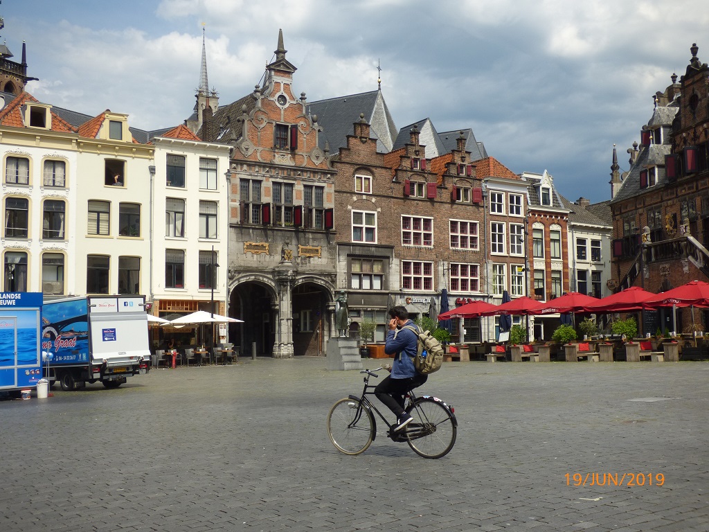 Die Bäckerei bietet eine Art Frühstücks Buffet und wir lassen es uns auf der Terrasse unterm Schirm so richtig gut gehen. Frisch gestärkt radeln wir vom Marktplatz aus zur Maas und dann in die Innenstadt von Nijmegen.