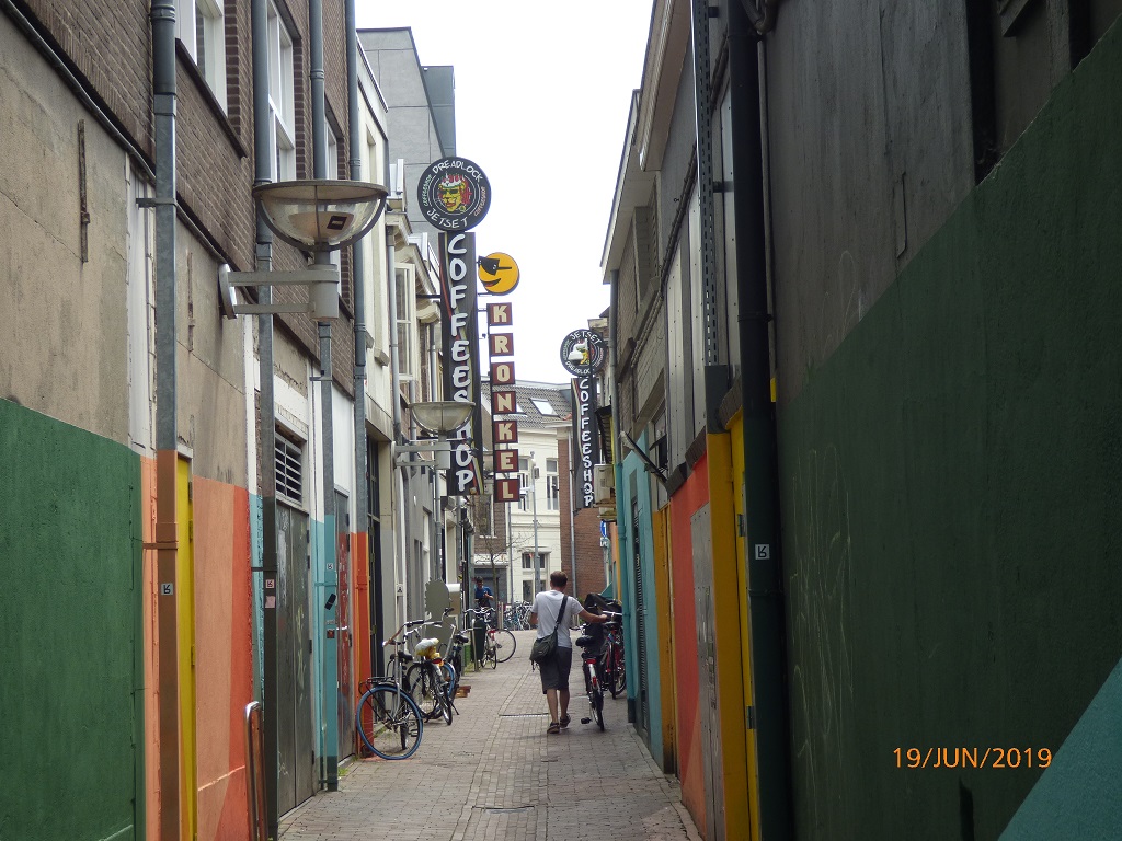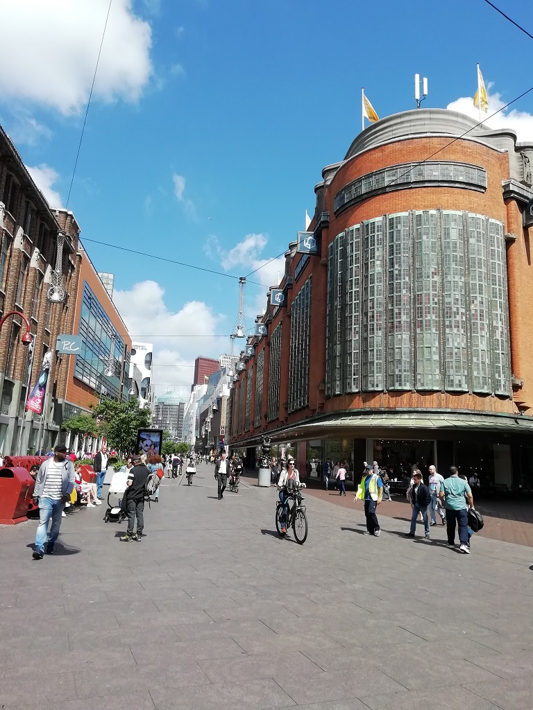 Vorbei an interessanter Gastronomie geht es zum Rathausplatz. Ein kleiner Rundweg um die St. Stevens Kirche. Kleiner Hinweis am Rande, unsere Räder stammen von der Firma Stevens…… Das neue Viertel mit der zweigeschossigen Einkaufsstraße wartet mit besonderen Design Ideen auf. Durch ein etwas skuriles Viertel mit ein paar Coffeeshops, die gar keinen Kaffee verkaufen, gelangen wir wieder zur Gastrostrasse und den Rädern….
