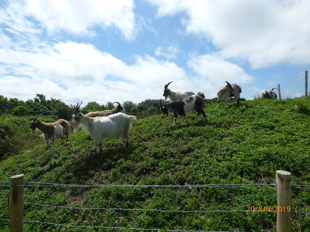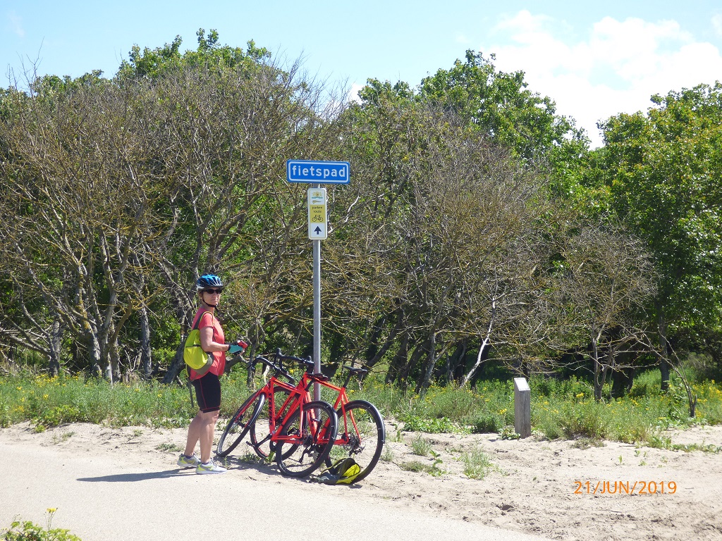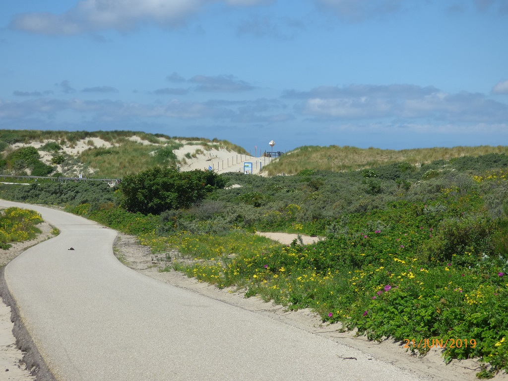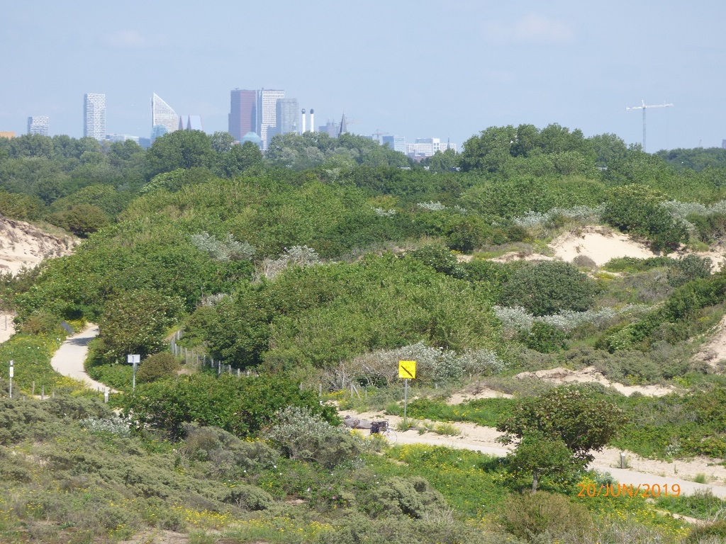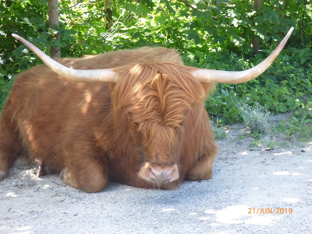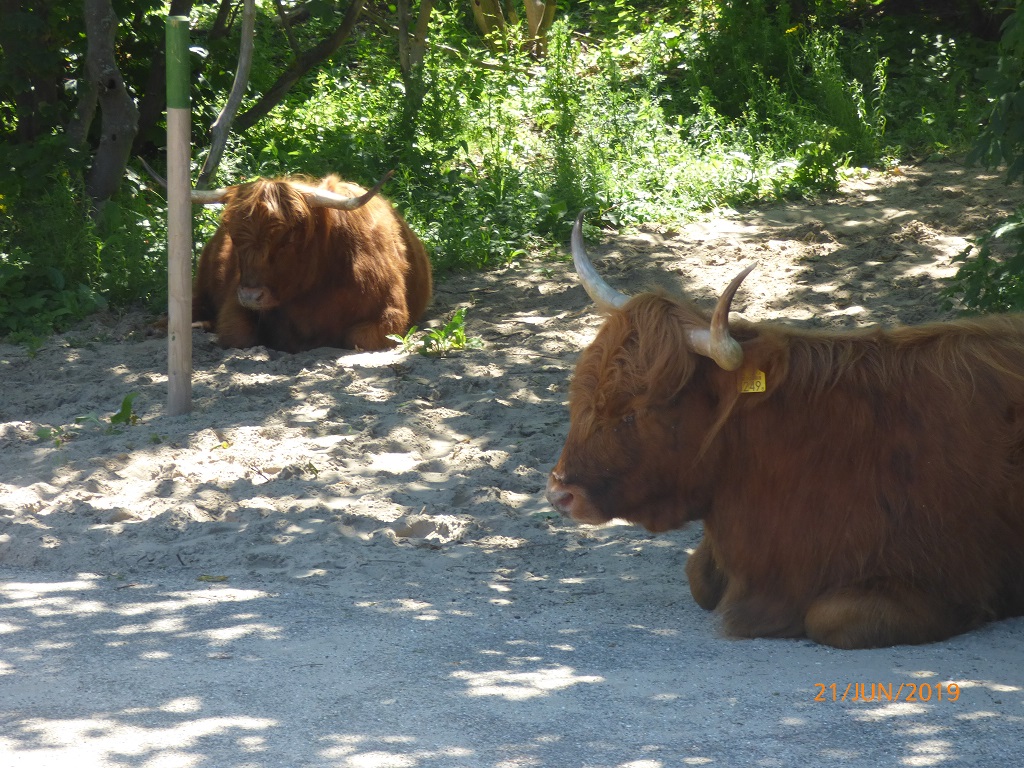 Auf dem Weg zurück überlegen wir uns schon den Plan für morgen. Scheveningen, die Hafenstadt vor Den Haag ist nicht weit weg. Das Riesenrad und die weiße Rakete sind laut Hinweistafeln nur sechs Kilometer entfernt. Da laufen wir aber nicht hin, wir nehmen die Räder. Die Fahrt nach Scheveningen muss wegen einigen „Wegelagerern“ unterbrochen werden. Allerdings ist unser Interesse an ihnen höher als andersrum. Solch coole Wiederkäuer sieht man nicht alle Tage und sogar in freier Wildbahn. Wir halten lieber Sicherheitsabstand und verzichten aufs Fellkraulen….. Dann geht es weiter durch die Dünen bis zur Strandpromenade von Scheveningen