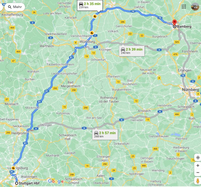 Am nächsten Morgen fahren wir ausgeruht weiter, frühstücken an der Raststätte Großenmoor und kommen völlig entspannt am frühen Nachmittag in Stuttgart an.