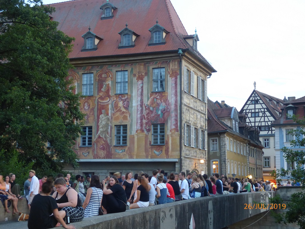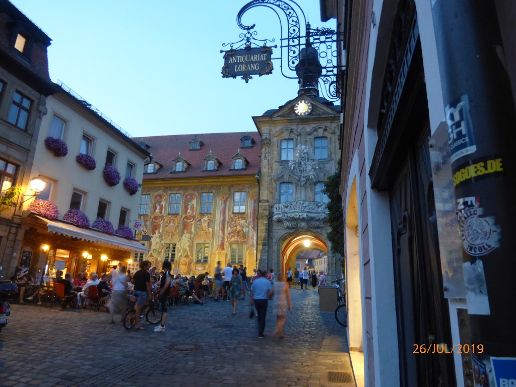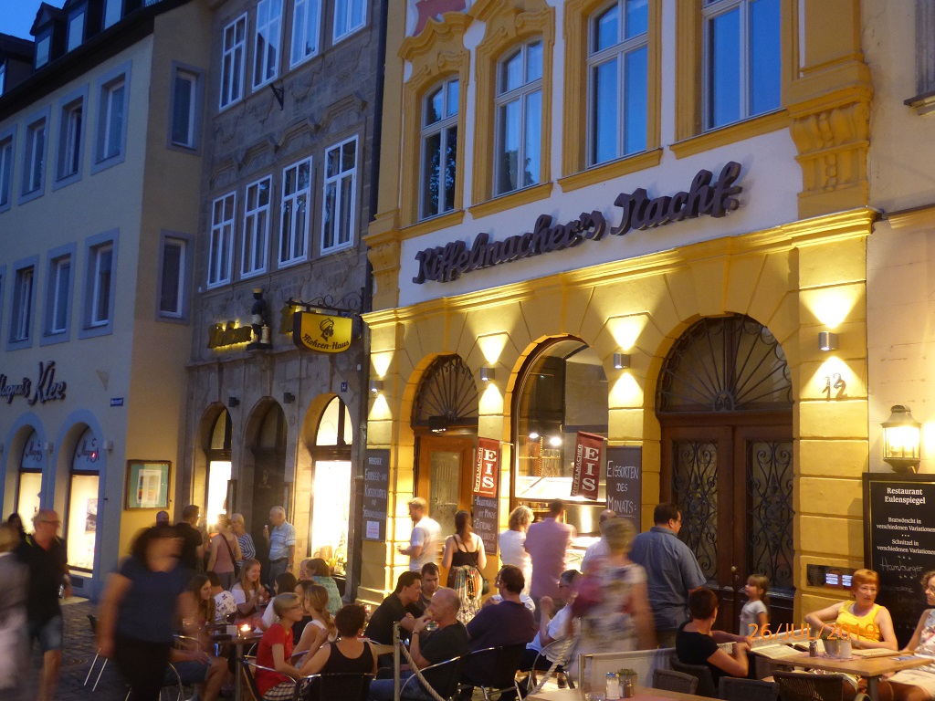 Freitag nach der Arbeit geht es los. Als erstes Etappenziel haben wir uns den Wohnmobilstellplatz am Heinrichsdamm in Bamberg ausgesucht. Sehr gut gelegen, direkt an der Regnitz, können wir am Ufer entlang direkt in die Altstadt laufen. Je dunkler es wird desto stimmungsvoller präsentiert sich die Innenstadt.