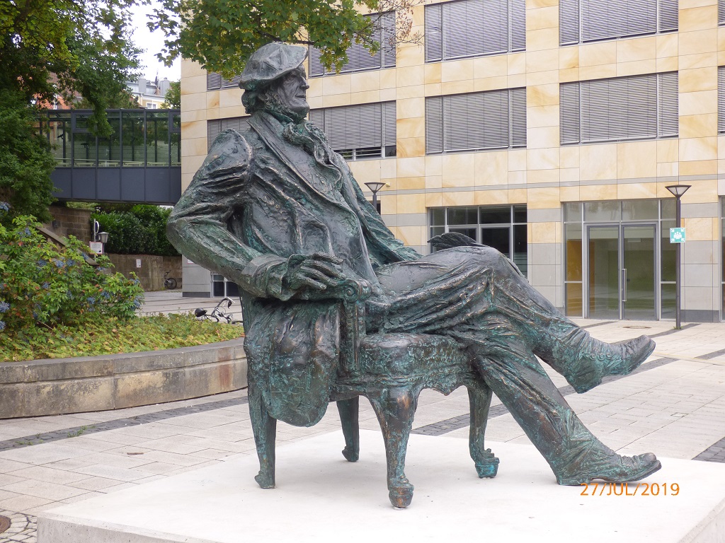 Als grobe Richtung haben wir uns die sächsische Schweiz vorgenommen. Zuvor genehmigen wir uns noch ein Eis in Bayreuth. Imposante Gemäuer, seltsame Gestalten und zwei berühmte Söhne der Stadt begegnen uns auf unserem Spaziergang.