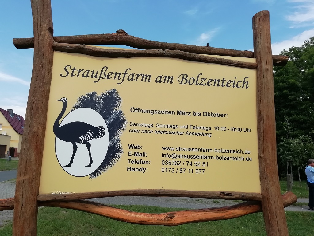 Nach der Radtour noch eine Nacht in Senftenberg dann machen wir uns auf den Weg um ein Versäumnis der Radtour nachzuholen. In Schönwalde wollten wir eigentlich zur Straußenfarm am Bolzenteich sind aber ein wenig vom Weg abgekommen. Mit Pompui ist es nur ein Katzensprung. Das Schild am Eingangstor offenbart allerdings den positiven Aspekt der geänderten Tour. Mit den Rädern vor verschlossener Tür zu stehen wäre sehr frustrierend gewesen.