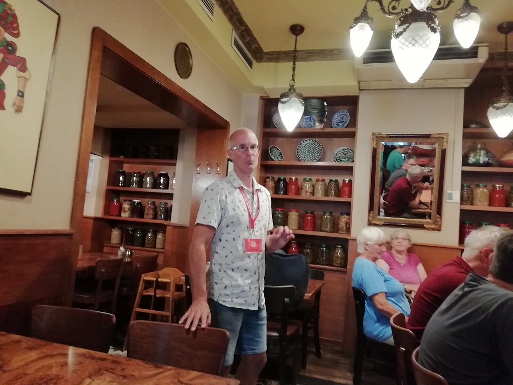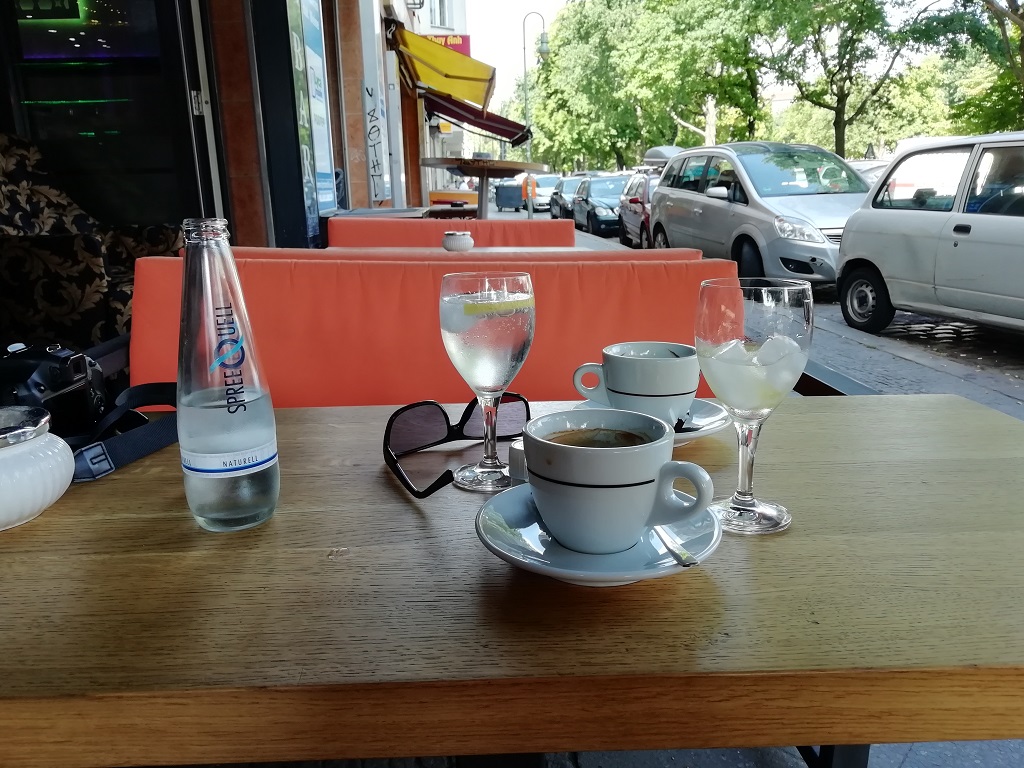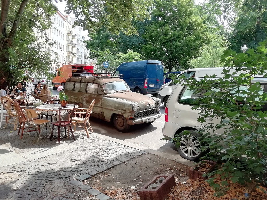 Am nächsten Morgen gibt es ein kleines Frühstück vorm WoMo und eine zweite Tasse Kaffee in Kreuzberg im Cafe Thron. In der Nähe treffen wir uns dann mit dem kulinarischen Führer von „Eat the world“. Die ersten Erklärungen zum bevorstehenden kulinarischen Rundgang durch Kreuzberg gibt es am Hohenstaufenplatz die Berliner sagen aber Zickenplatz. An der ersten Ess-Station zieht ein vor dem Haus geparkter Oldtimer die meiste Aufmerksam auf sich. Unser Reiseleiter kündigt uns überall an und ruft die für uns vorbereiteten Häppchen ab. Zu jeder der sieben Restaurants weiß der Mann eine Geschichte zu erzählen. Natürlich bekommen wir auch sonst einen kleinen Überblick was Kreuzberg und die angrenzenden Stadtteile angeht. Wir sind tatsächlich vier Stunden unterwegs. Vom Zickenplatz bis zum Landwehrkanal und auf der anderen Seite zurück zum Kottbusser Tor. Diesen Bereich nennt man hier in Berlin „Kotti“. Hier haben wir dann auch bei Leylak ein schmackhaftes Börek probieren dürfen. Im Restaurant Hasir ist dann Schluss. Der Reiseleiter findet noch ein paar nette Worte zum Abschied und ward nicht mehr gesehen.