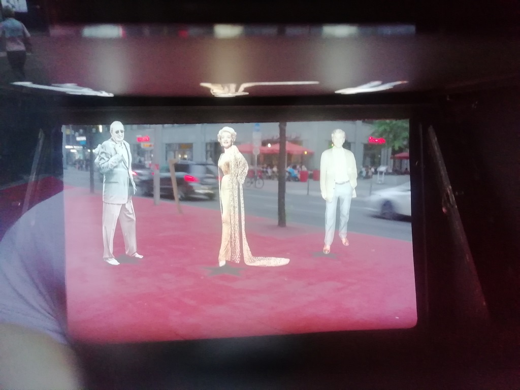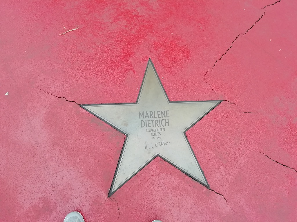 Wieder in die S-Bahn, umsteigen im Grunewald und aussteigen an der Friedrichstraße. Vor zehn Jahren sind wir von einer Baustelle zur anderen gelaufen und heute wollen wir das Ergebnis bewundern…. Tja was soll ich sagen. Den Baustellen sind neue gefolgt. Das Stadtschloss steht kurz vor der Fertigstellung, ist aber noch umgeben von Bauzäunen. Es geht nicht nur um Neubauten sondern auch um die Erhaltung der alten Bauwerke. Wir irren ein wenig rum, bevor wir dann den Weg zum Potsdamer Platz einschlagen. Dort lassen wir uns einen vegetarischen Ki-Nova-Burger schmecken. Nicht schlecht gestaunt haben wir über den deutschen Walk of fame. Auf dem Boulevard der Stars sind deutsche Hochkaräter verewigt. Als nettes Gimmick sind eine Art Fernrohre aufgebaut worden. Mit denen kann man in Richtung der Sterne schauen und darüber erscheint dann ein Hologramm des jeweiligen Künstlers. Der Versuch dies mit dem Fotoapparat einzufangen ist nur mit Qualitätseinbußen gelungen….