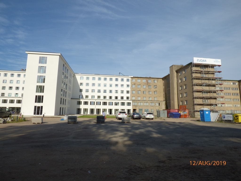Wir richten uns kurz ein und gehen gleich auf Erkundungstour. Im September 2011 sah hier alles ziemlich verlassen und heruntergekommen aus. In einem Gebäudeteile war das Museum untergebracht. Bei der Führung erfuhren wir mehr über den „Koloss von Prora“. Damals bestand die Hoffnung auf einen Investor, der hier eine Ferienanlage ansiedeln will. Wir sind sprachlos was aus dem grauen Ungetüm geworden ist…. Da sind zwar viele Wohneinheiten nebeneinander, aber der nahe Sandstrand macht daraus ein richtig tolles Urlaubsdomizil….