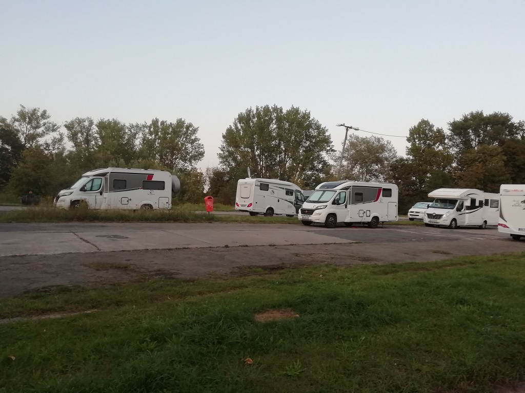 Da hat jemand seinen Garten betoniert und Stellplätze für 20 Fahrzeuge eingerichtet. Camping mitten in der Stadt sozusagen. Für den Rest des Tages gibt es nur einen kleinen Rundgang in der Nachbarschaft, denn es ist richtig kalt geworden. Wir machen es uns im Schneckenhaus gemütlich und feiern in den kombinierten Hochzeits-/ Geburtstag hinein….
