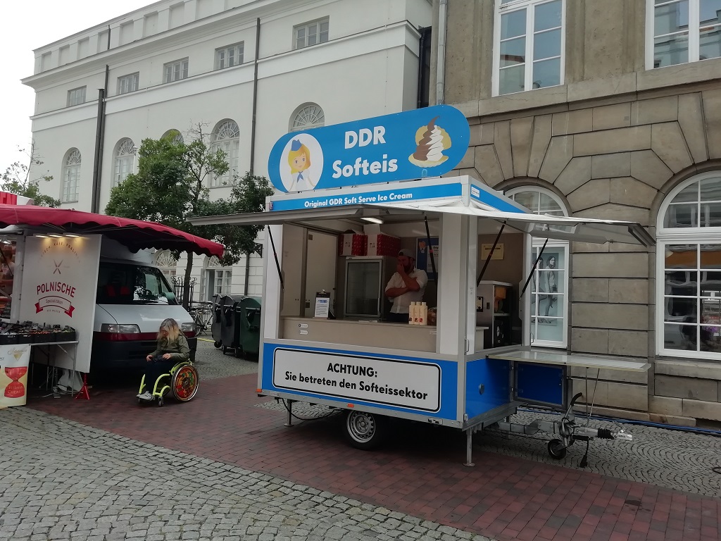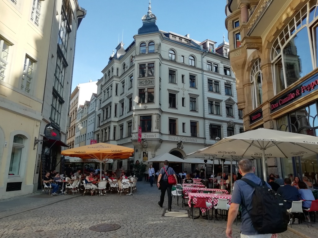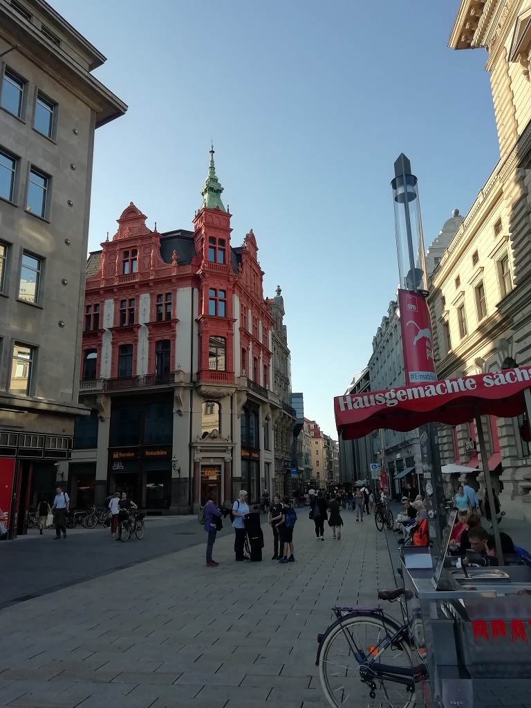 Reisetag am 22. August: Wir halbieren die Strecke und planen Leipzig als Stopp zur Übernachtung ein. Den Zeitpunkt des Frühstücks machen wir vom Füllstand des Tankes abhängig. Der Schwabe will sparen und fährt daher von der Autobahn ab. Wir fahren also übers Land durch kleine Ortschaften teilweise nicht größer als Aussiedlerhöfe. Sehr interessant zu sehen wie wenig besiedelt dieser Landstrich ist und welche Entfernungen zwischen den Ortschaften bestehen. Hier ist man ohne Auto wirklich aufgeschmissen. Tanken, Frühstück und dann wieder auf die Autobahn. Der Wohnmobilstellplatz in Leipzig liegt mitten in der Stadt unweit des Zoos und knapp 20 Gehminuten vom Zentrum entfernt. Das nutzen wir aus und gönnen uns ein Softeis während wir über den Marktplatz schlendern.