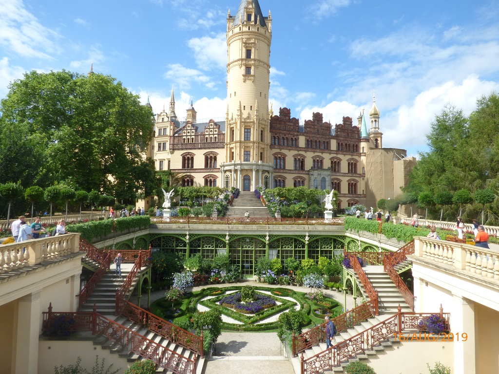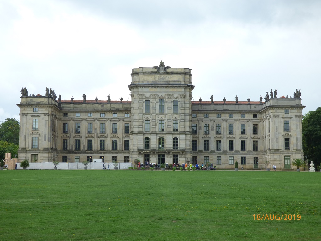 Reisetag am 18. August: Wir gehen den Tag langsam an und machen lediglich einen Umweg über Ludwigslust um uns die Beine zu vertreten. Hier ist man fleißig am erneuern und gestalten, eine Mammutaufgabe wenn man sich das große Ensemble mit dem Schloss, den zahlreichen Nebengebäuden, der Kaskade mit den Wasserspielen und die Stadtkirche anschaut.