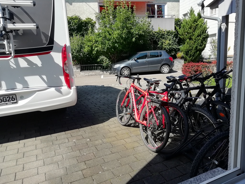 Die neuen Räder müssen getestet werden. Wir nutzen die erste einigermaßen brauchbare Wettervorhersage und suchen uns den Campingplatz Luginsland in Bad Bellingen als Ziel aus.