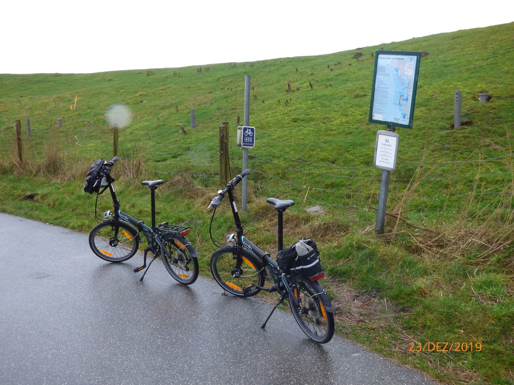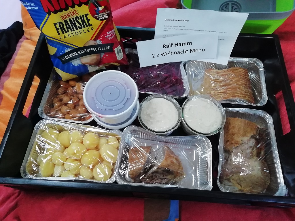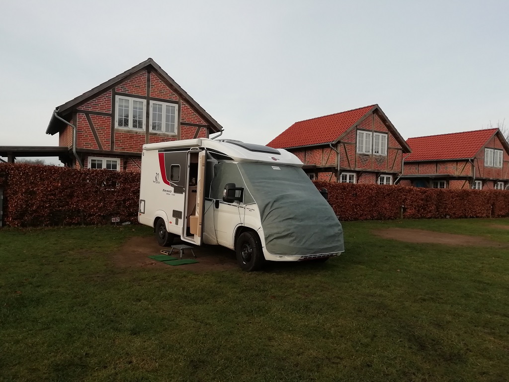 Wir wollen eine neue Tradition aufleben lassen. Wegen der guten Erfahrungen während der „Jahres-Endzeit-Tour“ im letzten Jahr wollen wir auch in diesem Jahr Weihnachten und Neujahr unterwegs verbringen. Den Plan in den Süden bis nach Nizza zu fahren müssen wir leider aufgeben. Ein Trauerfall in der Familie führt uns in den Norden Deutschlands, nach Flensburg. Die Fahrt beginnt am 18. Dezember nach Feierabend. Auf halber Strecke, am Autohof Schwarmstedt, legen wir den Halt zur Übernachtung ein. Bei der hier ansässigen Backerei „Vatter“ präsentiert man uns ein schmackhaftes Frühstück. Kurz hinter Flensburg, bevor wir nach Ribe weiter fahren versorgen wir uns im Scandinavian Park / Handewitt mit allem was man über den Jahreswechsel so braucht. Bis zum Campingplatz ist dann nicht mehr weit, aber die Rezeption hat um 20:15 Uhr geschlossen. Den ersten Pluspunkt sammelt der Laden bereits mit seiner Möglichkeit des Quick Stopp. Wir kaufen am Automat ein passendes Ticket für die Nacht und können damit aufs Gelände fahren. Das Einrichten geht schnell, es genügt die Plane als Kälte- und Sichtschutz. Gleich nach dem Aufstehen schauen wir uns auf dem Weg zur Rezeption den Platz genauer an. Dort begeistert man uns u.a. auch für das Angebot einer ortsansässigen Catering Firma. Ein Weihnachtsmenü als Bausatz für Heiligabend. Da machen wir auf jeden Fall mit.