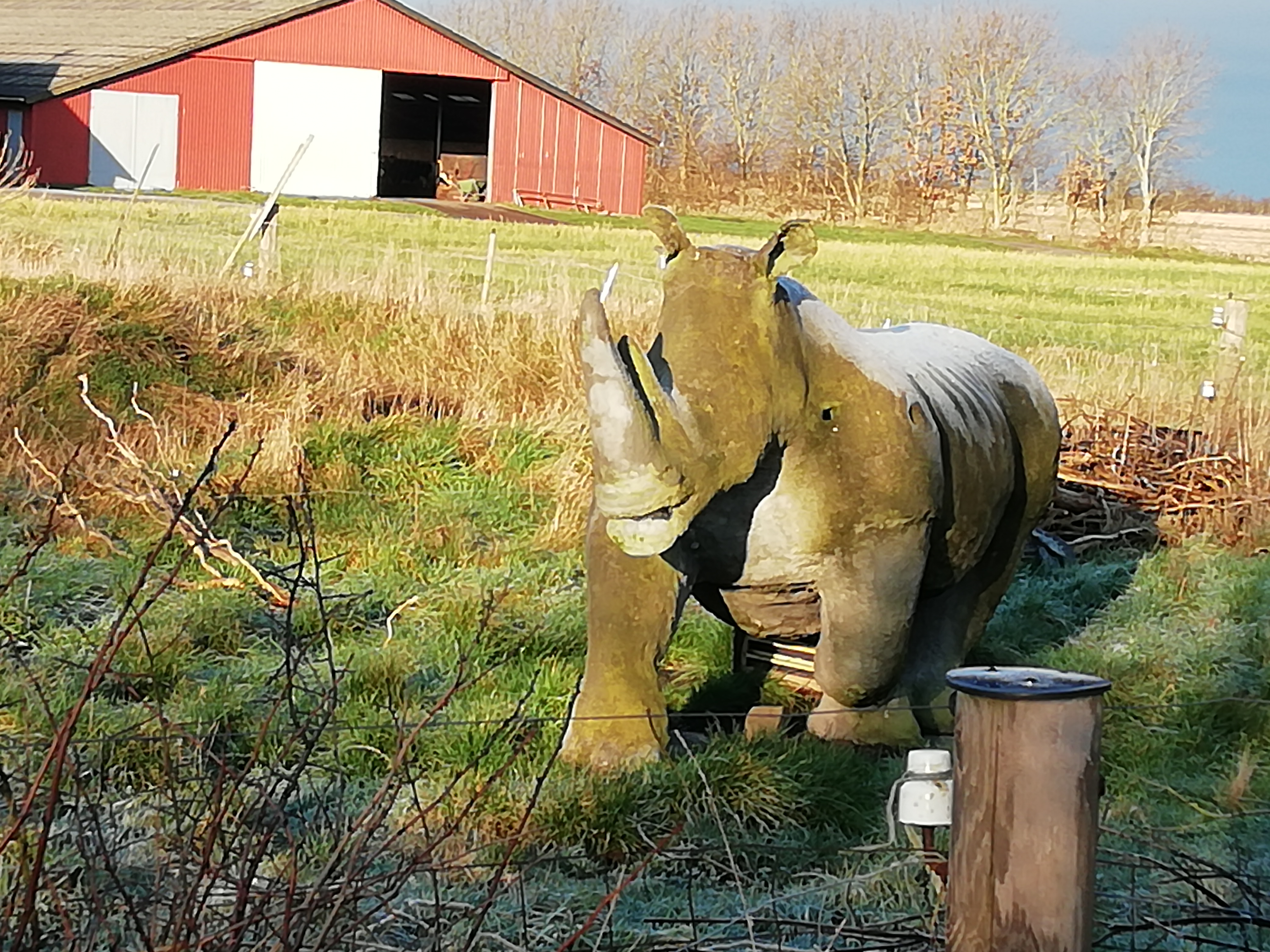 Wir versuchen es noch einmal mit dem Überweg zur Halbinsel Mondø. Der sieht heute etwas vertrauenserweckender aus. In Anbetracht der Wetterfront die auf uns zu rollt unterlassen wir den Versuch aber. Auch die fehlende Kenntnis der Gezeiten ist ein schwerwiegendes Argument dagegen. Bei der Weiterfahrt werden wir kurzzeitig von seltsamen Streckenposten beobachtet.