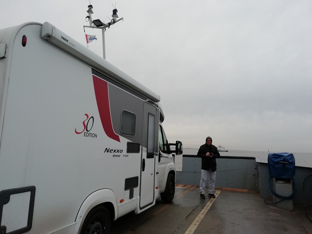 Die Art der Zubereitung dieser Pommes ist mir neu. Da hängt eine Presse mit Kartoffelbrei über der Fritteuse und für jede Portion wird der Hahn geöffnet. Ungefähr wie bei der Spätzlepresse. Das Ergebnis schmeckt hervorragend. Durch den Gegenwind wird die Rückfahrt etwas beschwerlicher. Unterwegs besorgen wir uns am Fisch Imbiss das Abendessen. Danach wird eingeräumt und Pompui auf die Abfahrt morgen vorbereitet.
