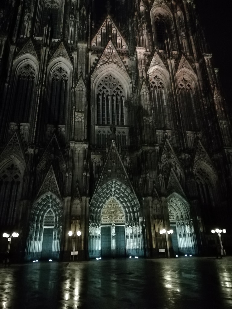 Den Heimweg planen wir über die A3 mit einer Übernachtung in Köln. Unterwegs fällt uns der tolle Jahresbeginn in Oberhausen ein. Vielleicht können wir das ja in Köln im Musical Dome wiederholen. Noch bevor wir den Reisemobilhafen anfahren machen wir Halt beim Ticketverkauf des Dome. Es wird Romeo und Julia, ein Rockballett, gegeben. Eli beruhigt mich, das ist kein klassisches Ballett sondern eine moderne Interpretation hat man am Ticketschalter gesagt. Na gut schaun mer mal…. Zunächst einen Platz am Reisemobilhafen sichern und dann ein ausgedehnter Spaziergang in Richtung Dom. Das Restaurant im Musical Dome bietet ein Menü an und was soll ich sagen, man gönnt sich ja sonst nix…. So gestärkt gehen wir zu unseren Plätzen. Alles in Blau angeleuchtet, sieht schon ziemlich modern aus.