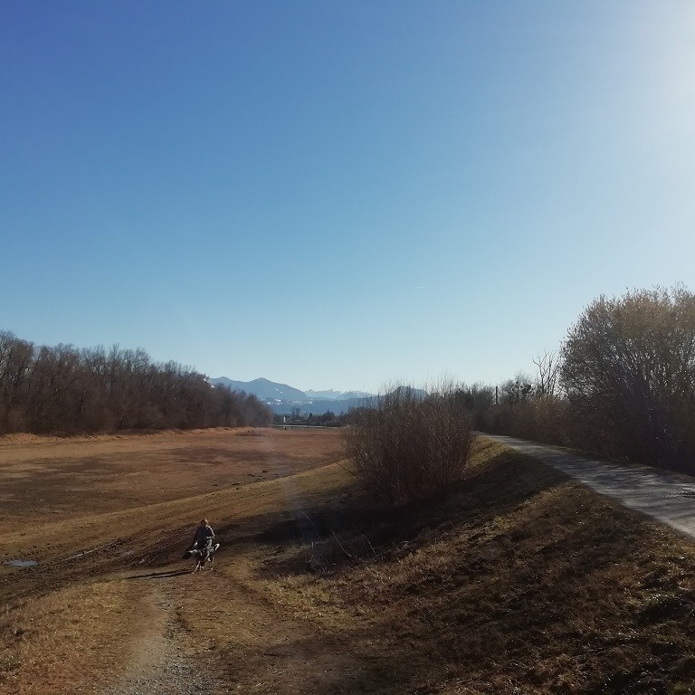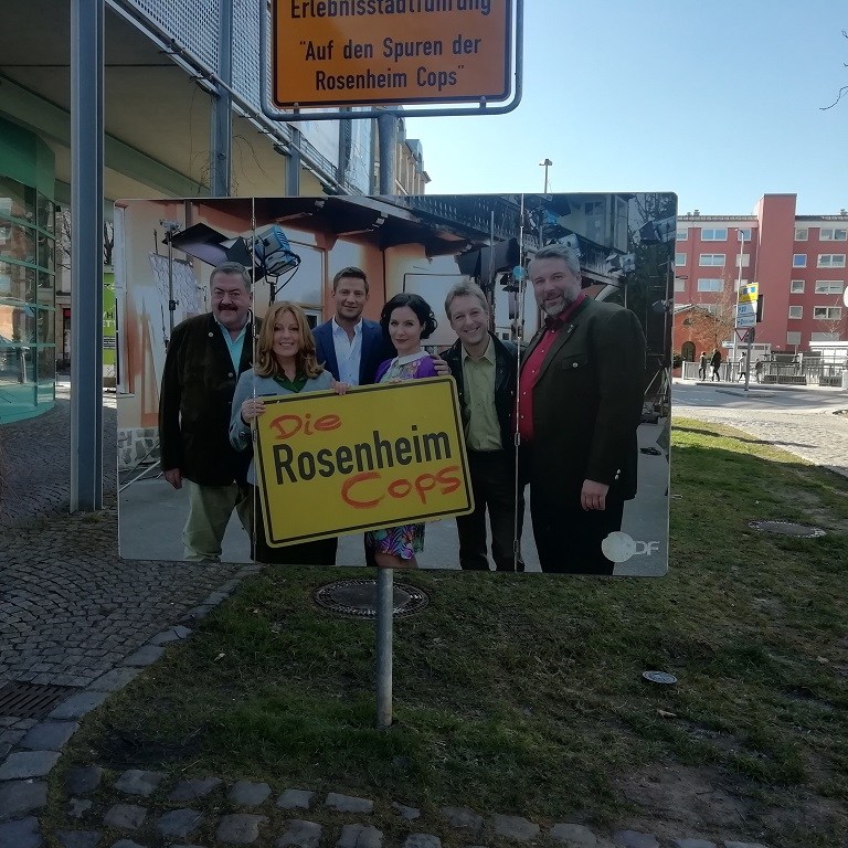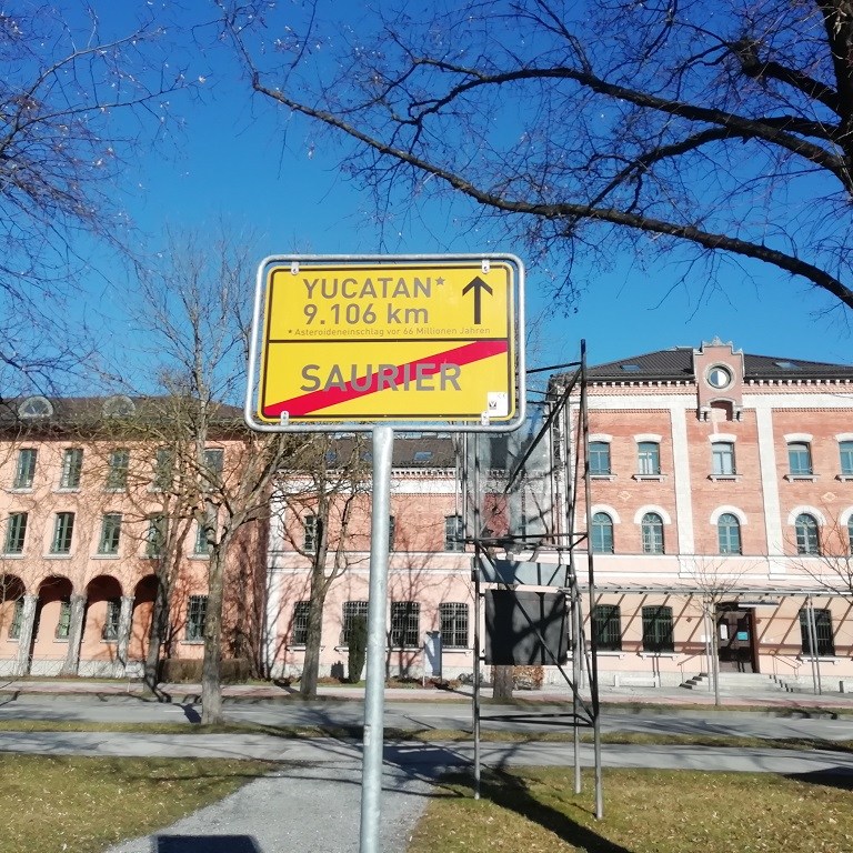 Da steht einer Radtour nach Rosenheim nichts im Wege. Dort finden wir die Polizeiinspektion der „Rosenheim Cops“. Im richtigen Leben handelt es sich hierbei um das Rathaus von Rosenheim. Das Verkehrsschild gegenüber ist Teil der Vorankündigung einer Ausstellung und weist auf das Ende der Dinosaurier durch einen Asteroideneinschlag hin. Auf dem Rückweg noch ein paar Fotos von der Inn-Aue. Hier ist viel Platz geschaffen für den Fall dass der Fluss über die Ufer tritt.