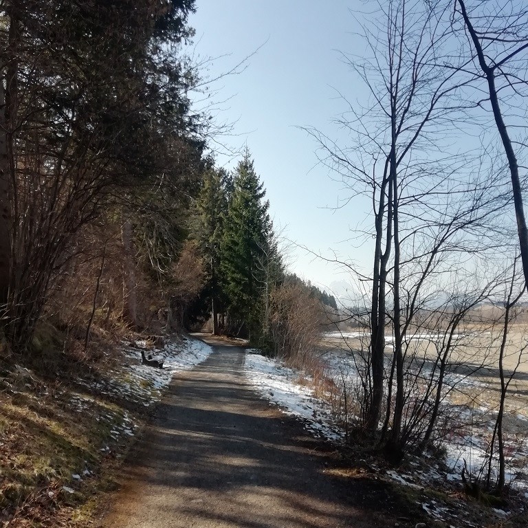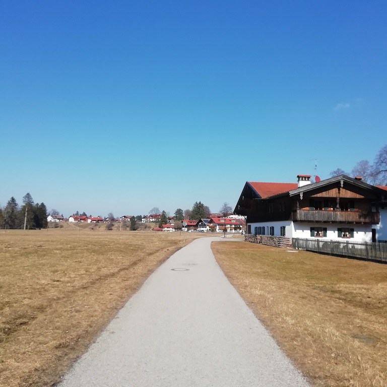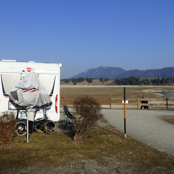Wir lassen uns an der Rezeption noch den Radweg zu den Schlössern erklären und ziehen uns ins Schneckenhaus zurück. Sobald die Sonne weg ist wird es nämlich empfindlich kalt am verschwundenen Forggensee. Aus diesem Grund trauen wir uns auch erst nach einem ausgedehnten Frühstück gegen Mittag auf die Räder.