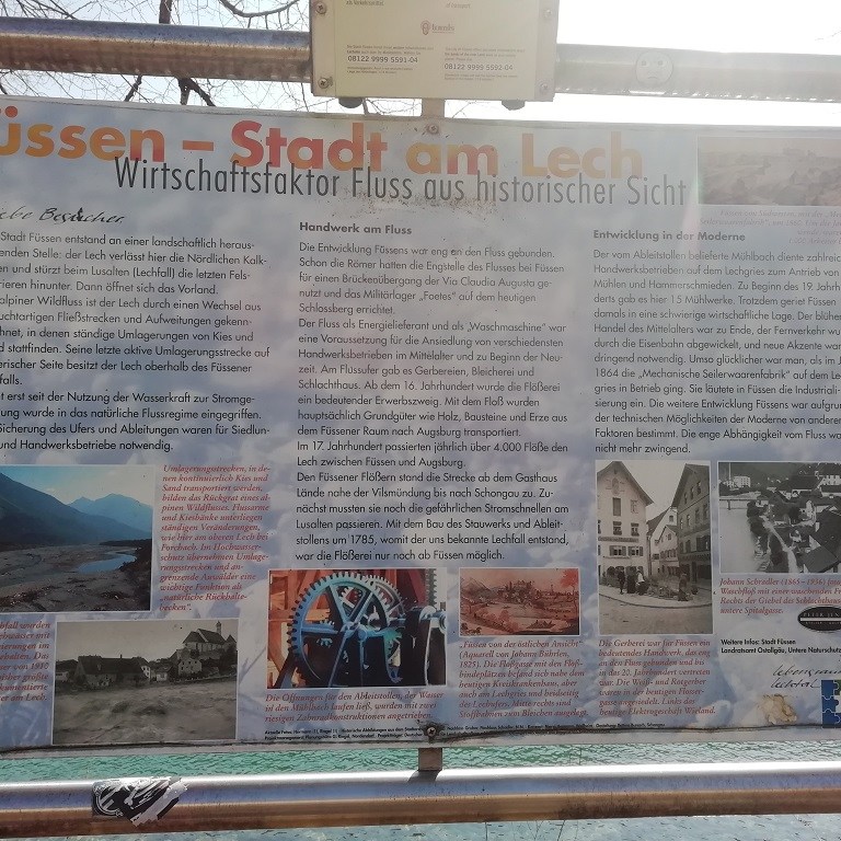Allerdings bleibt es nicht beim Faulenzen. Die Sonne treibt uns raus und wir lassen uns zu einem kleinen Spaziergang am breiten Seeufer entlang animieren. Wie so oft bei uns ist dieser Begriff relativ dehnbar. Wir lassen die ersten Aufgänge links liegen und finden uns am Ufer eines breiten Flusses wieder. Umkehren ist keine Option. Weiter am Gewässer entlang kommen wir zum Wasserkraftwerk Horn und dann in die Altstadt von Füssen. Hier erfahren wir dann auch, dass wir die ganze Zeit am Lech entlang gelaufen sind. Kurzer Rundgang in der Altstadt und dann geht es auf sicheren Pfaden, nämlich dem Radweg, zurück.