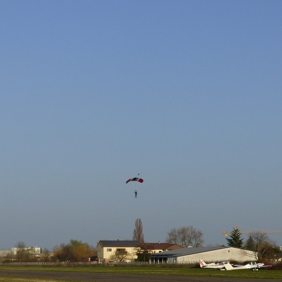 Wir richten uns auf dem ersten Platz des Muskateller Weges ein. Von hier bekommen wir nach der Abreise des Nachbarn einen tollen Blick zum Almensee. Von nebenan können wir die Motorengeräusche der startenden Sportflieger hören und diese auch kurz nach dem Abheben von unserem Platz aus beobachten. Den See und auch den kleinen Flugplatz erkunden wir mehrfach. Dabei entdecken wir die schwarzen Schwäne, recht interessante Wohnmobile, können Flieger und sogar einen Fallschirmspringer beim Landen beobachten.