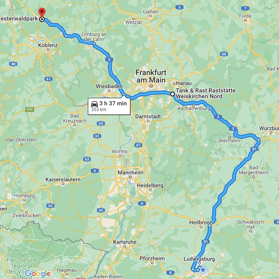 Die Tour wird kurzfristig geändert in ein Shopping-Wochenende im CentrO Oberhausen. Wir sind in Italien zur Hochzeit eingeladen und möchten uns dort angemessen einkleiden. Lassen wir den Anruf und die Terminänderung außen vor läuft alles wie geplant. Nach der Kaffeepause in Weiskirchen versaut uns dann aber ein zwölf Kilometer-Stau den Zeitplan. Für einen Stopp zur Übernachtung klingt die Ausfahrt Neuwied sehr sympathisch. Der Westerwaldpark, eine Art Rasthof am Ortsrand von Oberhonnefeld soll es werden. Um den großen Parkplatz mit etlichen Tesla-Ladestationen haben sich einige Läden angesiedelt. Die meisten davon sind allerdings geschlossen. Burger King hat keine große Anziehungskraft auf uns. Die Speisekarte mit georgischen Gerichten des Restaurant Batumi weckt unser Interesse.