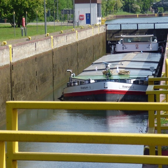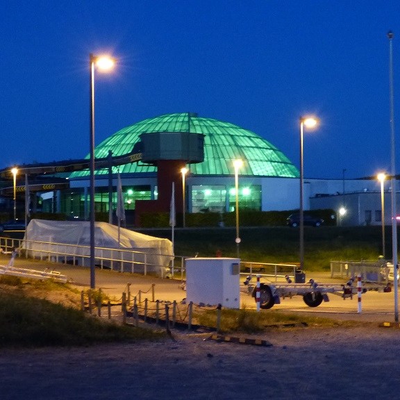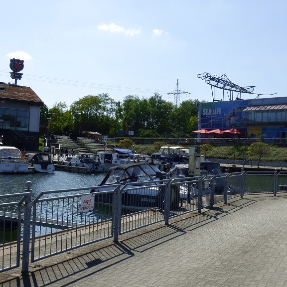 Samstag, 07. Mai: Nach relativ wenig Schlaf geht es weiter zur Marina Oberhausen. Der kleine Hafen hat direkten Zugang zum Rhein-Herne-Kanal. Von den Stellplätzen hat man auf der einen Seite den Blick zur Marina und auf der anderen Seite zum Kanal. Auch die Kuppel vom AQUApark ist zu sehen. An der Kasse des großen Schwimmbades sind die Zugangsberechtigungen für die Stellplätze erhältlich.