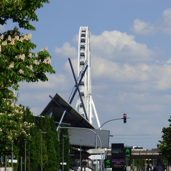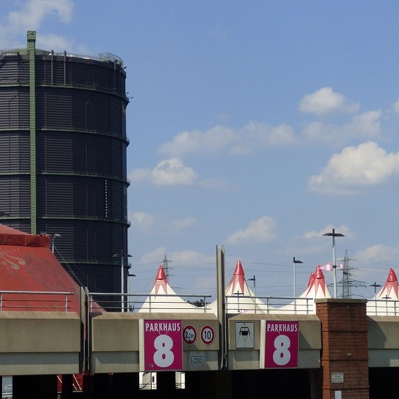 Aus dem Kaisergarten heraus werden wir dann auch gleich von der Stadt eingefangen. Der alte Wasserturm, das Gebäude des Technologiezentrums Umweltschutz, der Gasometer und das Riesenrad vorm CentrO bilden den Abschluss unserer kleinen Wanderung.