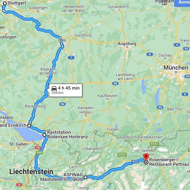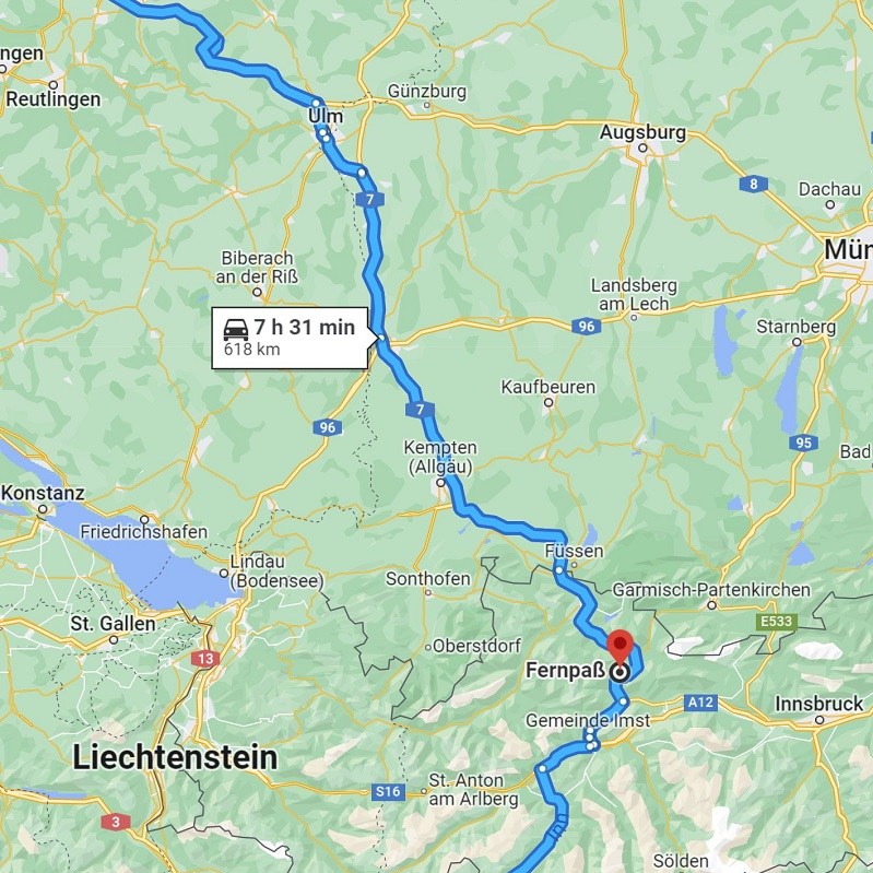 Freitag, 20. Juni: Die erste Etappe muss aufgrund zahlreicher Staumeldungen Richtung München kurzfristig geändert werden. Die Strecke über den Bodensee zeigt sich dabei als gute Wahl, denn wir kommen relativ störungsfrei vorwärts. Für das Abendessen und die Übernachtung suchen wir uns den schon mehrfach genutzten Rastplatz in Pettnau aus. Das Wetter ändert sich während dem Essen. Einer angenehmen kühlen Brise folgt ein Gewitter mit ordentlich Regen.