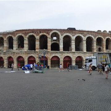 Tja was soll ich sagen…. Sie hat mal wieder Recht behalten! Der Platz Camping Verona Village liegt nahe an der Autobahnausfahrt Verona – Süd. Die Anlage macht einen sehr guten Eindruck und ist auf jeden Fall empfehlenswert. Für weitere Informationen hier lang…. Wir mieten uns für zwei Übernachtungen ein. Da es noch früh am Tag ist gehen wir auf kurze Erkundung mit den Rädern. Zunächst geht es in Richtung Centro und dann zur Arena. Dort ist die Hölle los. Es ist für uns nicht klar ersichtlich, aber der Platz rund um die Arena ist wohl wegen einer Laufveranstaltung abgesperrt. Zusätzlich wird auch noch die Arena selbst für zukünftige Veranstaltungen herausgeputzt. Dementsprechend eng geht es in der Innenstadt zu. Da hilft nur die Flucht. Auf dem Rückweg, kurz nach dem Einfahrtstor zur Innenstadt fällt uns eine nette kleine Pizzeria ins Auge.