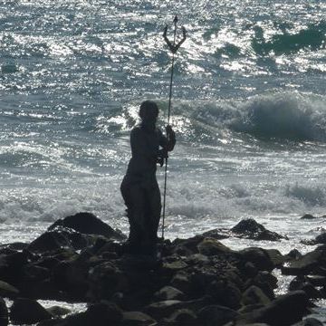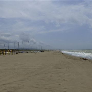 Der Rundgang dauert länger als erwartet und im Hinblick auf die harten Tage in Rom entscheiden wir uns für Erholung in der Nähe. Es bietet sich der Castelfusano an. Der Platz liegt direkt an der Küstenstraße die zunächst als Besucherparkplatz dient und je näher man Ostia kommt in eine schicke Promenade übergeht. Der Strand überrascht mit einem sehr dunklen Sand. Das liegt anscheinend am hohen Eisengehalt bzw. Lavaanteil, wenn man dem Internet glauben darf. Teilweise sollen die Sandkörner wie Diamanten glänzen. Das Meer ist etwas unruhig, aber wir trauen uns trotzdem ins Wasser. Nicht lange und wir werden durch einen Rettungsschwimmer mit energischem Trillerpfeifen-Ton rausbeordert. Tatsächlich wird das Raus schwerer als das Rein. Die Wellen reißen uns von den Füßen und wirbeln uns über den steinigen Untergrund. Die Narbe unter meinem Knie ist der Beweis dafür. Im Nachhinein herzlichen Dank dem jungen Mann der uns rechtzeitig zurück gepfiffen hat…. Am Abend sind wir zu faul in den Kühlschrank zu schauen und gehen lieber ins platzeigene Restaurant.