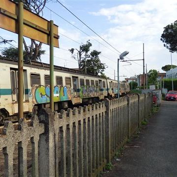 Der Campingplatz ist eine Wucht. Den Namen „Village Flaminio“ sollte man sich merken und schon mal den Internetauftritt anschauen. Eine sehr gute Ausstattung und auch an die Kinder ist bei der Möblierung gedacht worden. Zunächst eine passende Lücke finden und den Stadtplan für morgen studieren. Zur Vorbereitung der Stadtbesichtigung erkunden wir nach dem Essen die Umgebung und fragen uns bis zum Bahnhof durch. Auf dem Weg fällt uns eine kleine Baumgruppe mit kuriosem Unterbau ins Auge.