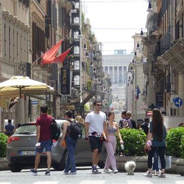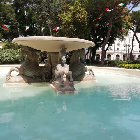 Donnerstag, 26. Juni: Zum Glück ist der Start in die Stadtbesichtigung gut vorbereitet, was uns ein entspanntes Frühstück einbringt. Mit der Bahn fahren wir von Due Ponti aus zur Endstation am Piazzalle Flaminio und starten den Rundgang von hier über den Piazza del Popolo bis zur Piazza Venezia. Rund um die Piazza sind verschiedene Fundstellen von Überresten römischer Bauwerke ausgewiesen, abgesperrt und zur Besichtigung freigegeben. Im Stadtplan eingezeichnet als Foro Romano. Ein imposantes Sammelsurium von Ruinen, Grundmauern und einzelnen Steinresten. Beim Spaziergang um die Ruinen finden wir ein nettes, gut im Schatten liegendes Restaurant und lassen uns einen Teller Risotto schmecken. So gestärkt ist der Weg zum Colosseum nur ein Katzensprung. Leider ist der Besucherandrang so groß, dass für die nächsten beiden Tage alle Termine ausgebucht sind. Na dann eben nur von außen, dafür finden wir auf dem Rückweg den berühmten Trevi – Brunnen. Apropos Besucherandrang, diese Idee haben viele andere auch, wir belassen es bei einem Selfie und verzichten auf das Werfen der Münze.