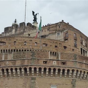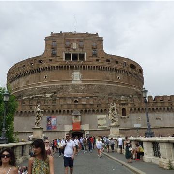 Freitag, 27. Juni: Nach dem Frühstück besteigen wir die Drahtesel und suchen uns den Weg zum Tiber. Die Räder stellen wir vor den Augen des Militärs an deren Check Point ab und gehen zu Fuß. Den Infos im Netz zu folge gibt es einen geschützten Gang vom Petersdom zur so genannten Engelsburg gibt. Im Falle eines Angriffes auf die Vatikanstadt hätte der Papst sicheren Schutz in der rund angelegten, mit Wassergraben umgebenen Burg gefunden.