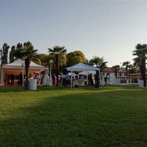 Nach diesem Erlebnis machen wir unsere Kaffeepause lieber in einer Raststätte auf der Autobahn. Die Festlichkeiten finden in der Gegend um Quarto d‘ Altino statt. Der Campingplatz unserer Wahl liegt im Städtchen Zero Branco und somit knapp 25 Kilometer entfernt. Von hier aus nehmen wir uns Zeit für Besuche bei der Verwandtschaft und natürlich die Hochzeitsfeier. Die Hochzeitsgäste treffen sich vorm Standesamt. Ein allgemeines Hallo und warten auf das Brautpaar. Es wird viel fotografiert und die meisten Aufnahmen gelingen besser als das u.a. Bild mit den Personen ohne Oberkörper….